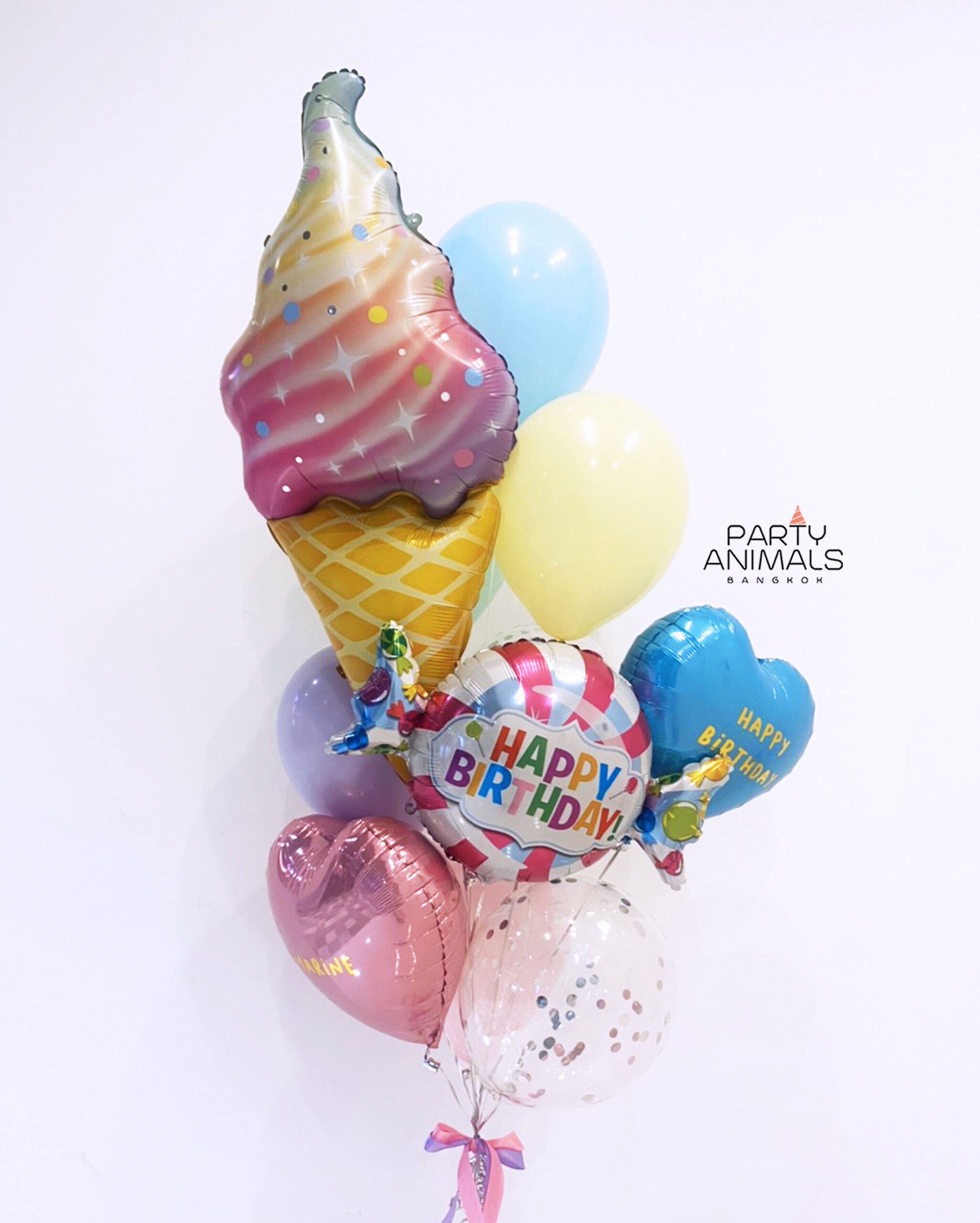 ลูกโป่งวันเกิด ลูกโป่งเซอร์ไพรส์ Birthday Balloon – Pastel Ice Cream & Candy Balloon Bouquet (with Helium) (12 pcs)