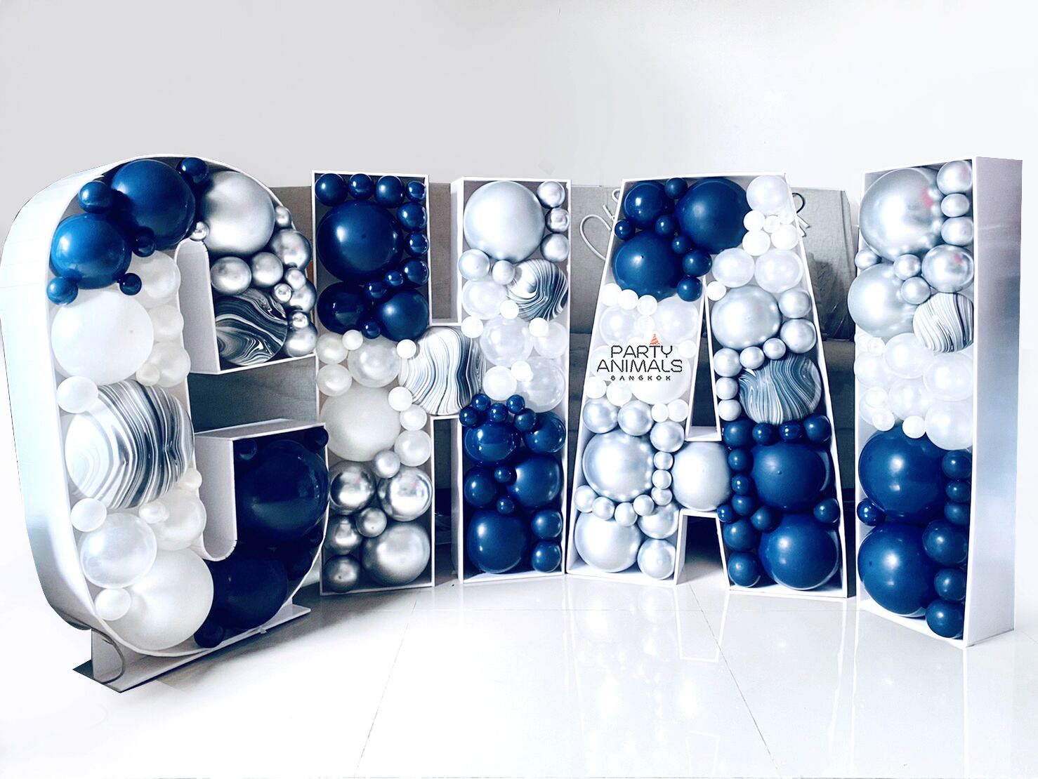ลูกโป่งวันเกิด ลูกโป่งเซอร์ไพรส์ Birthday Balloon – Navy & Marble Mosaic Balloons (Air-filled) (4 pcs)