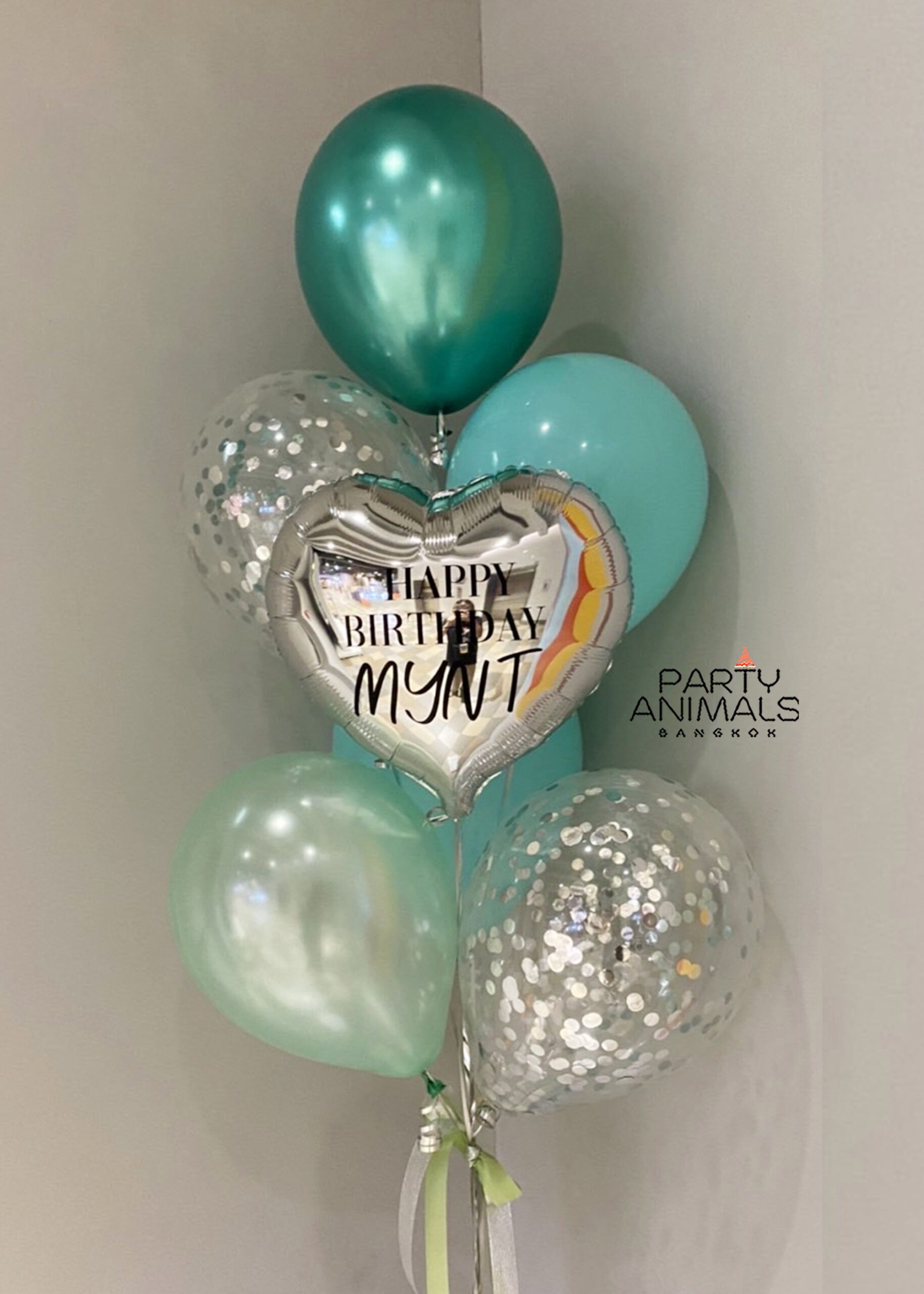 ลูกโป่งวันเกิด ลูกโป่งเซอร์ไพรส์ Birthday Balloon – Mint & Chrome Green Balloon Bouquet (with Helium) (7 pcs)