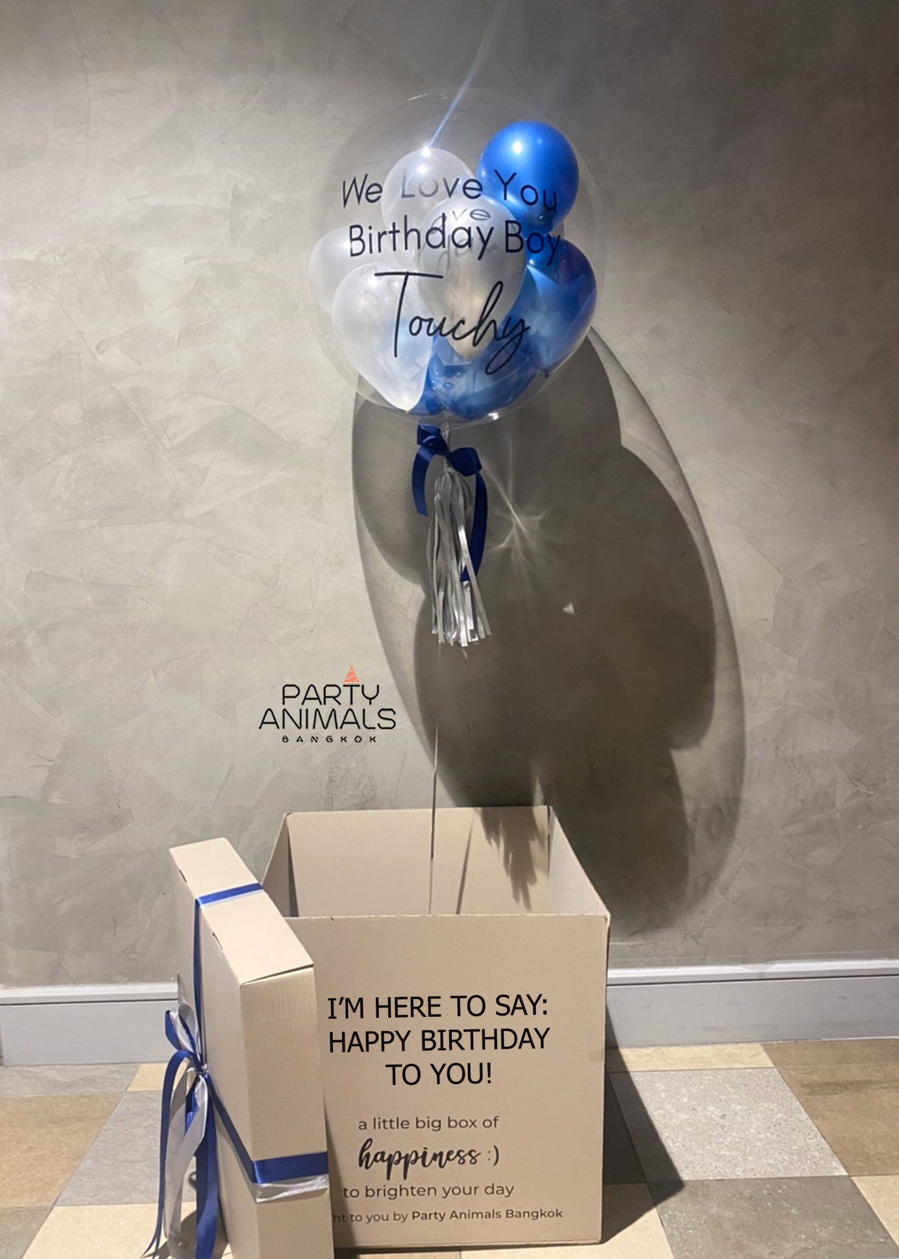 ลูกโป่งวันเกิด ลูกโป่งเซอร์ไพรส์ Birthday Balloon – Blue Tiny in Big Balloon in Surprise Box (with helium)