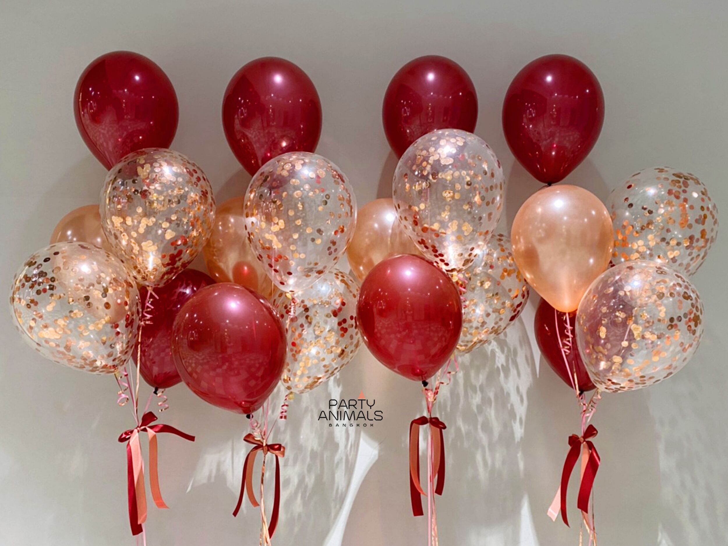 ลูกโป่งวันเกิด ลูกโป่งเซอร์ไพรส์ Birthday Balloon – Burgundy Red Wine & Rose Gold Balloon Set (with Helium) (20 pcs)