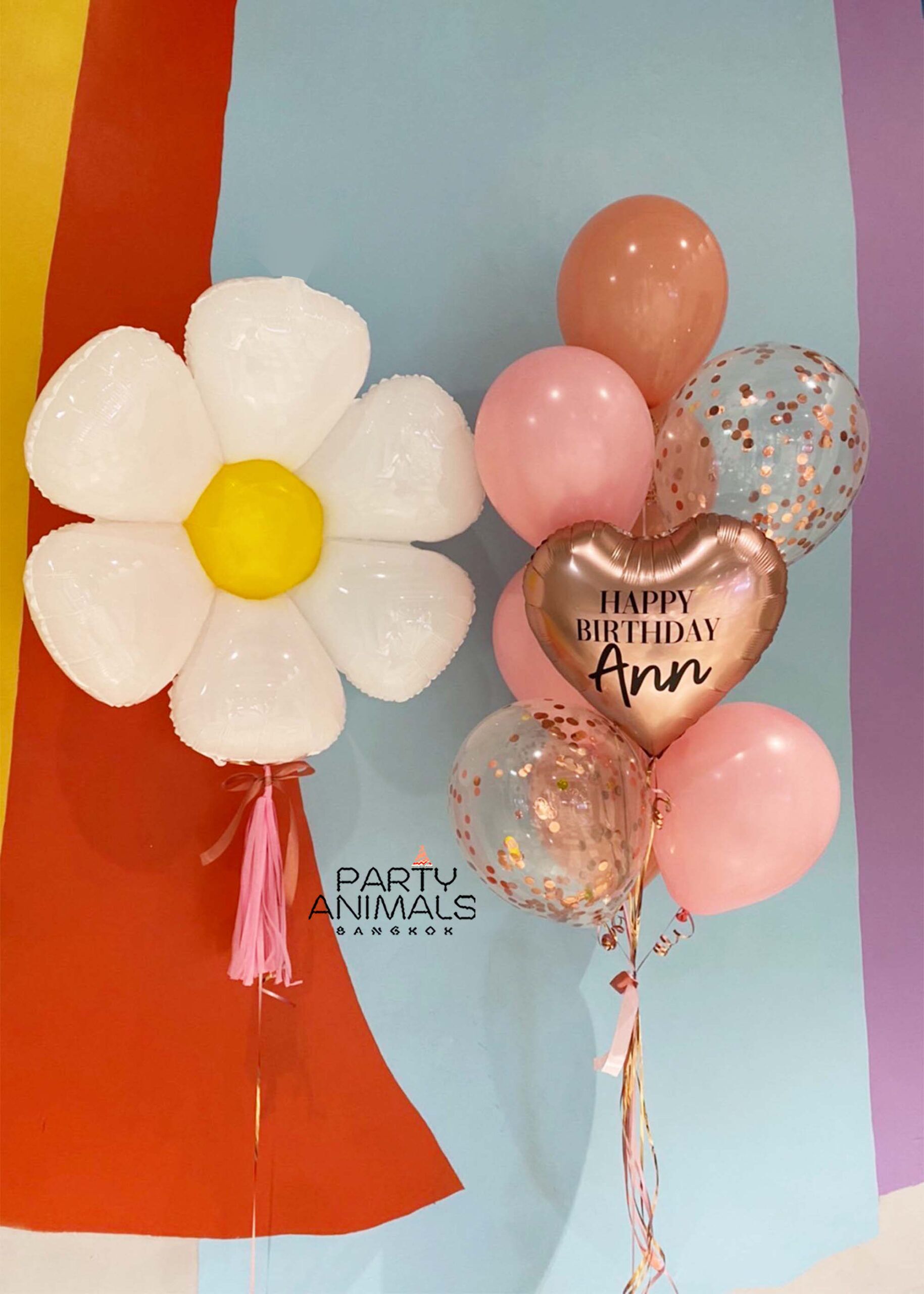 ลูกโป่งวันเกิด ลูกโป่งเซอร์ไพรส์ Birthday Balloon – Daisy Flower & Rose Gold Balloon Bouquet (with helium) (8 pcs)
