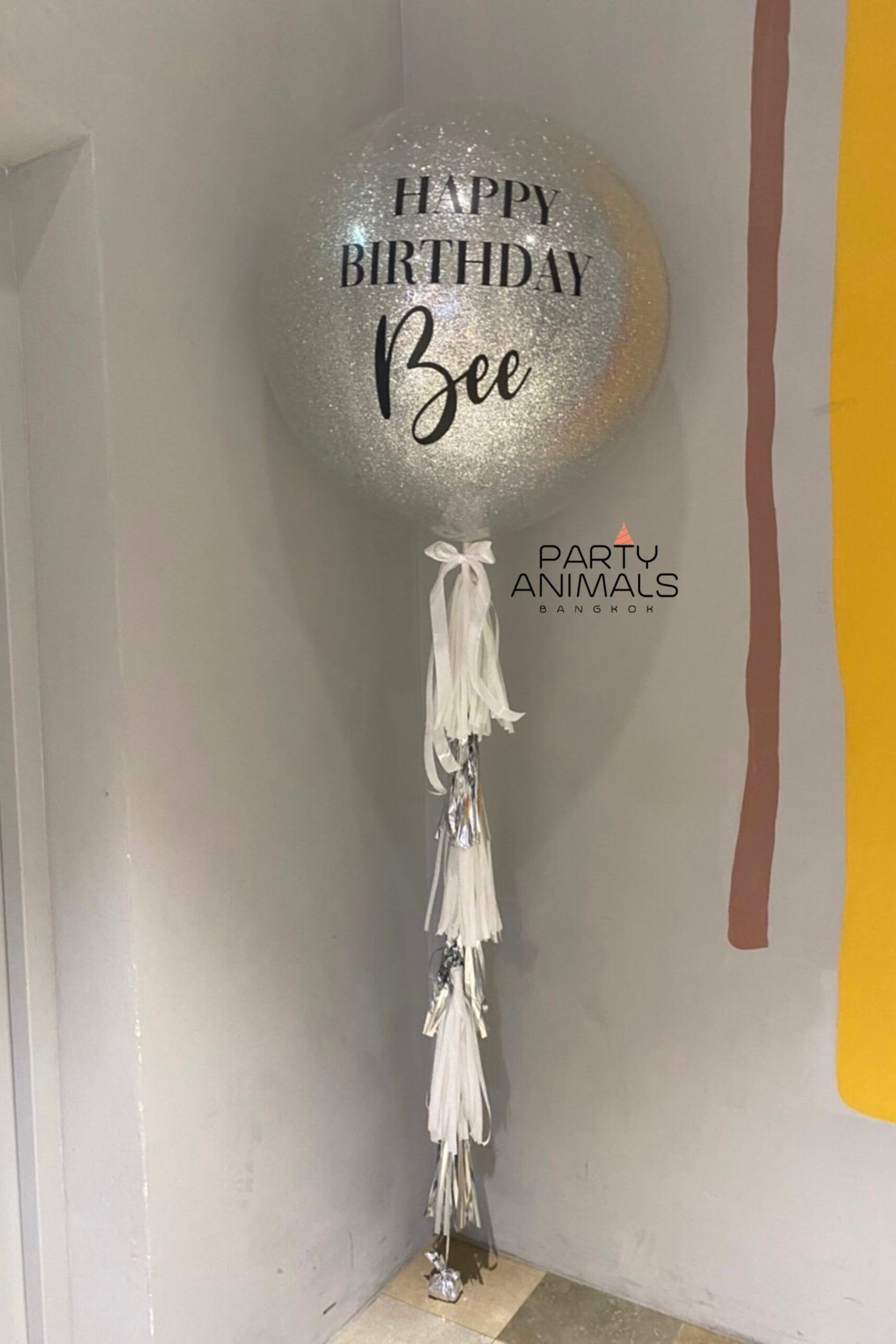 ลูกโป่งวันเกิด ลูกโป่งเซอร์ไพรส์ Birthday Balloon – Silver & White Glitter 36″ Balloon (with helium) (1 piece)