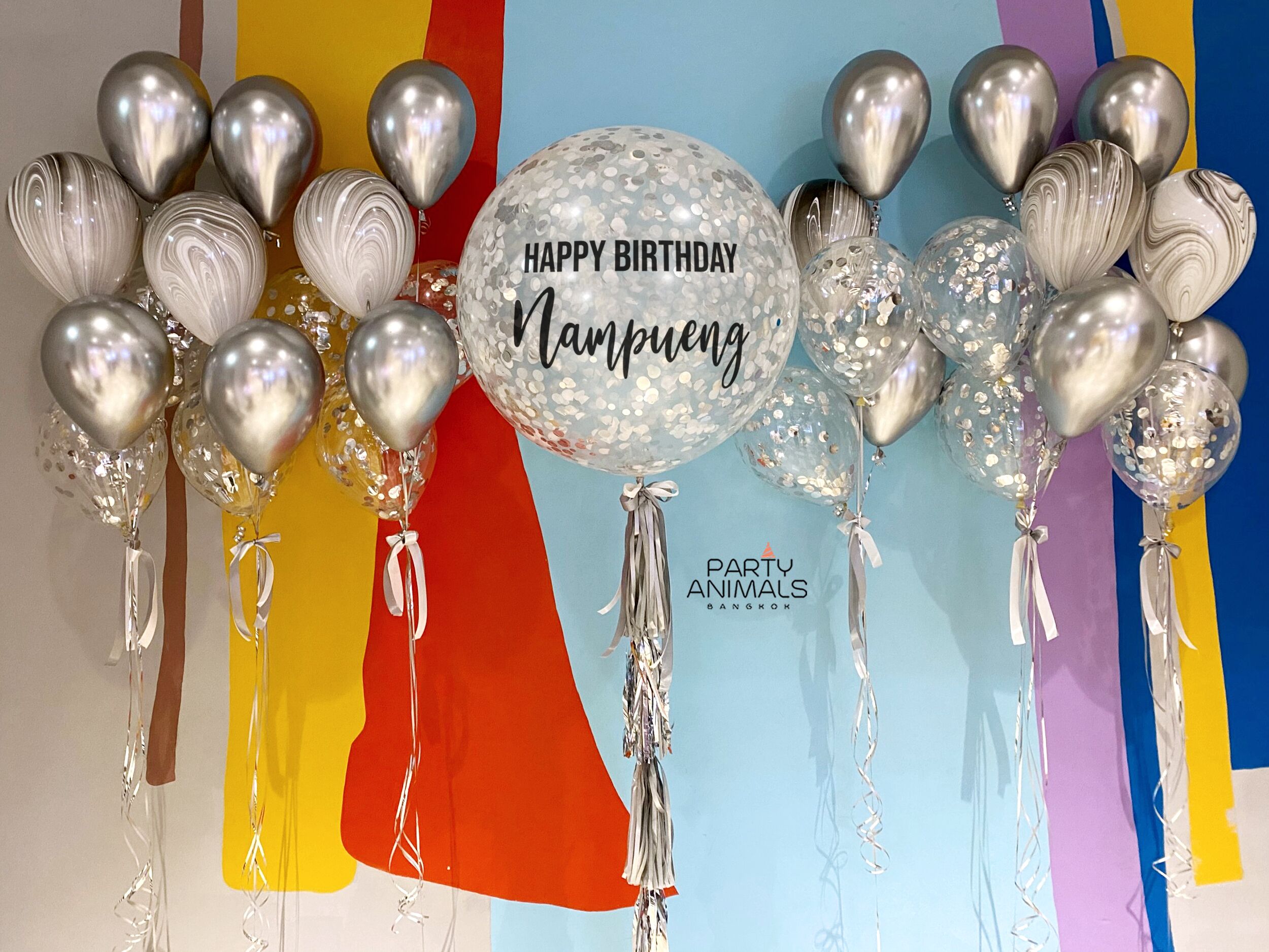 ลูกโป่งวันเกิด ลูกโป่งเซอร์ไพรส์ Birthday Balloon – Marble Silver & White 36″ Balloon Set (with Helium) (31 pcs)