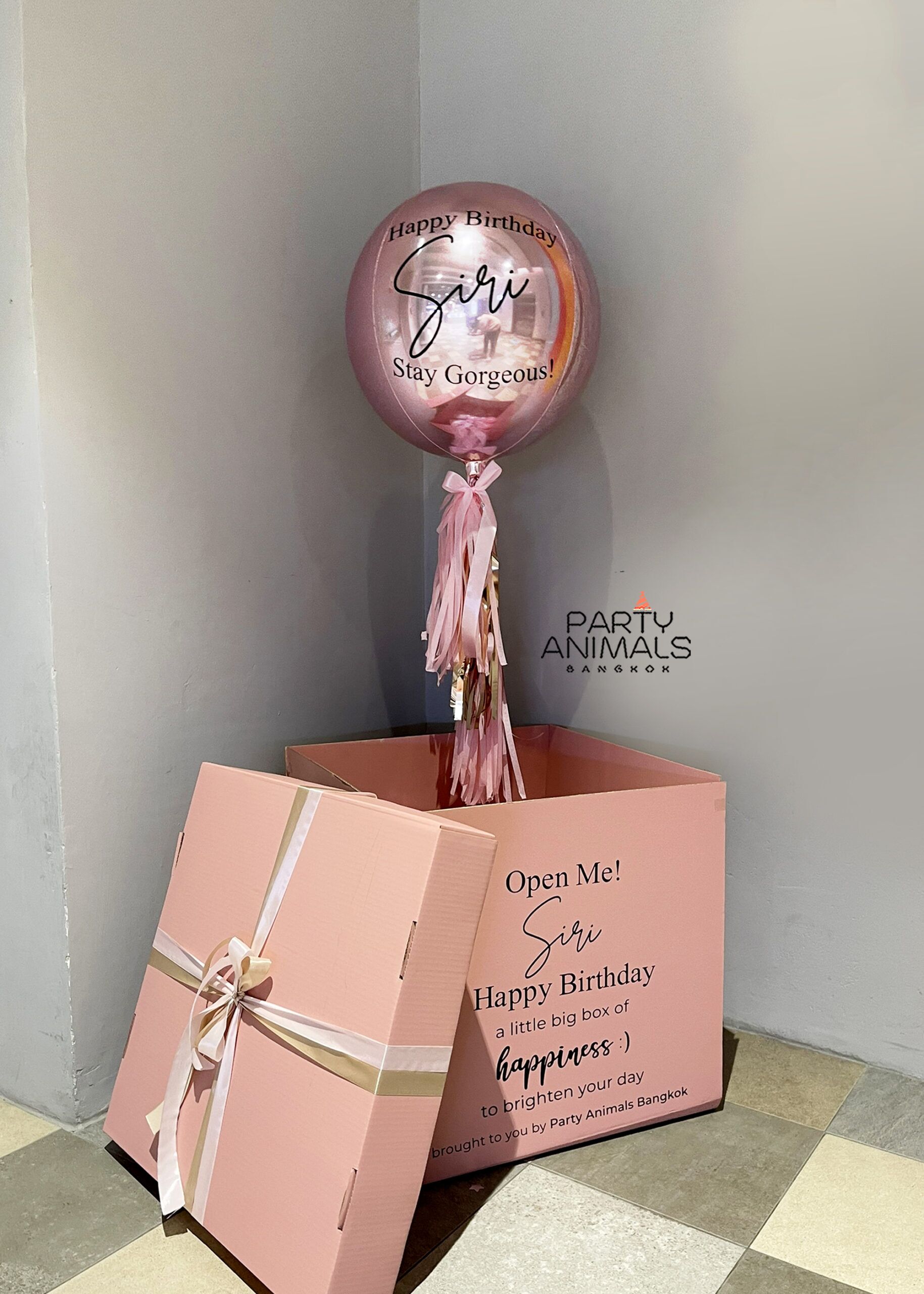 ลูกโป่งวันเกิด ลูกโป่งเซอร์ไพรส์ Birthday Balloon – Pastel Pink Orbz in a Surprise Box (with helium) (ติดคำบนกล่อง 1 ด้าน)