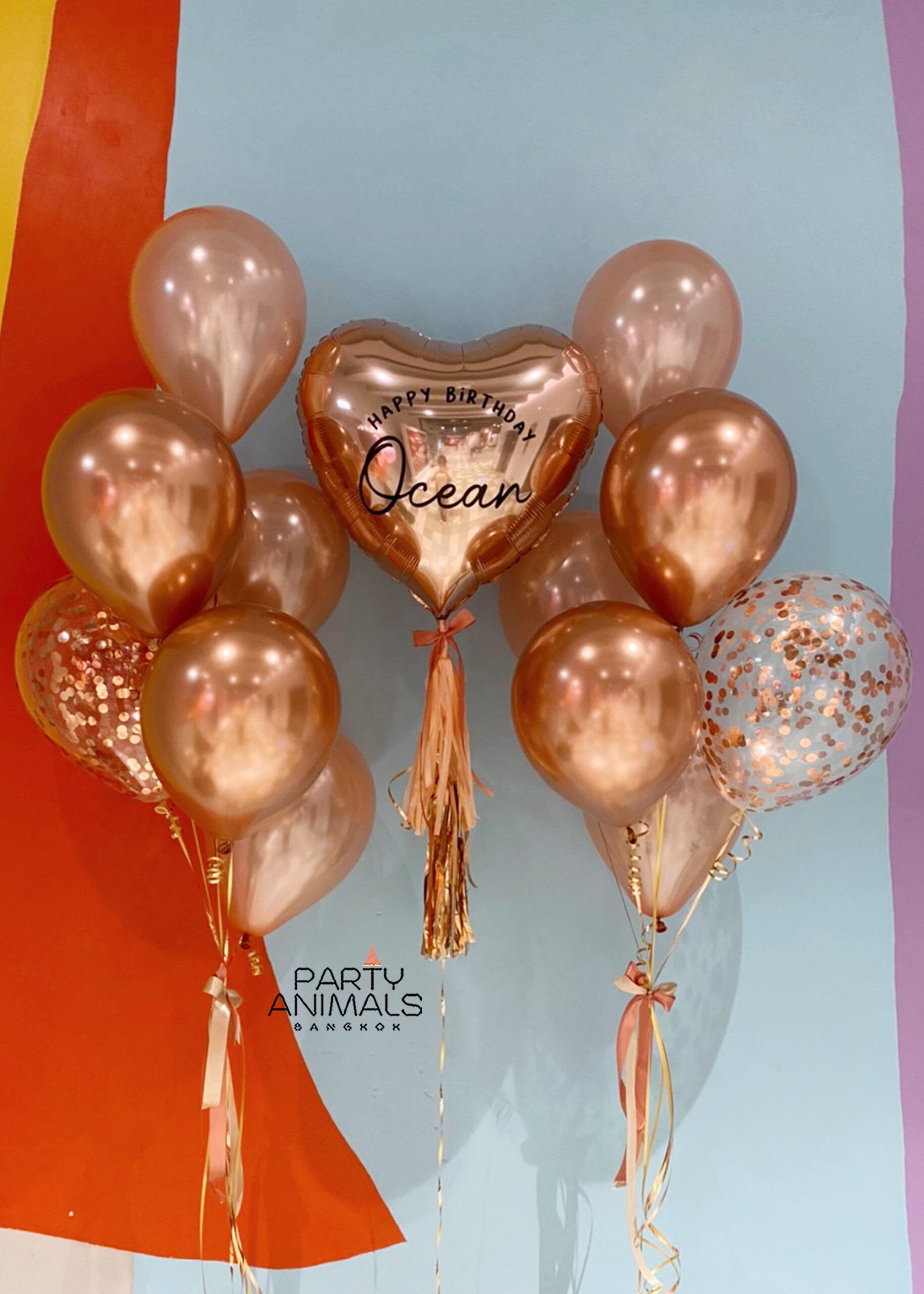 ลูกโป่งวันเกิด ลูกโป่งเซอร์ไพรส์ Birthday Balloon – 24″ Heart Chrome Rose Gold Balloon Set (with Helium) (13 pcs)