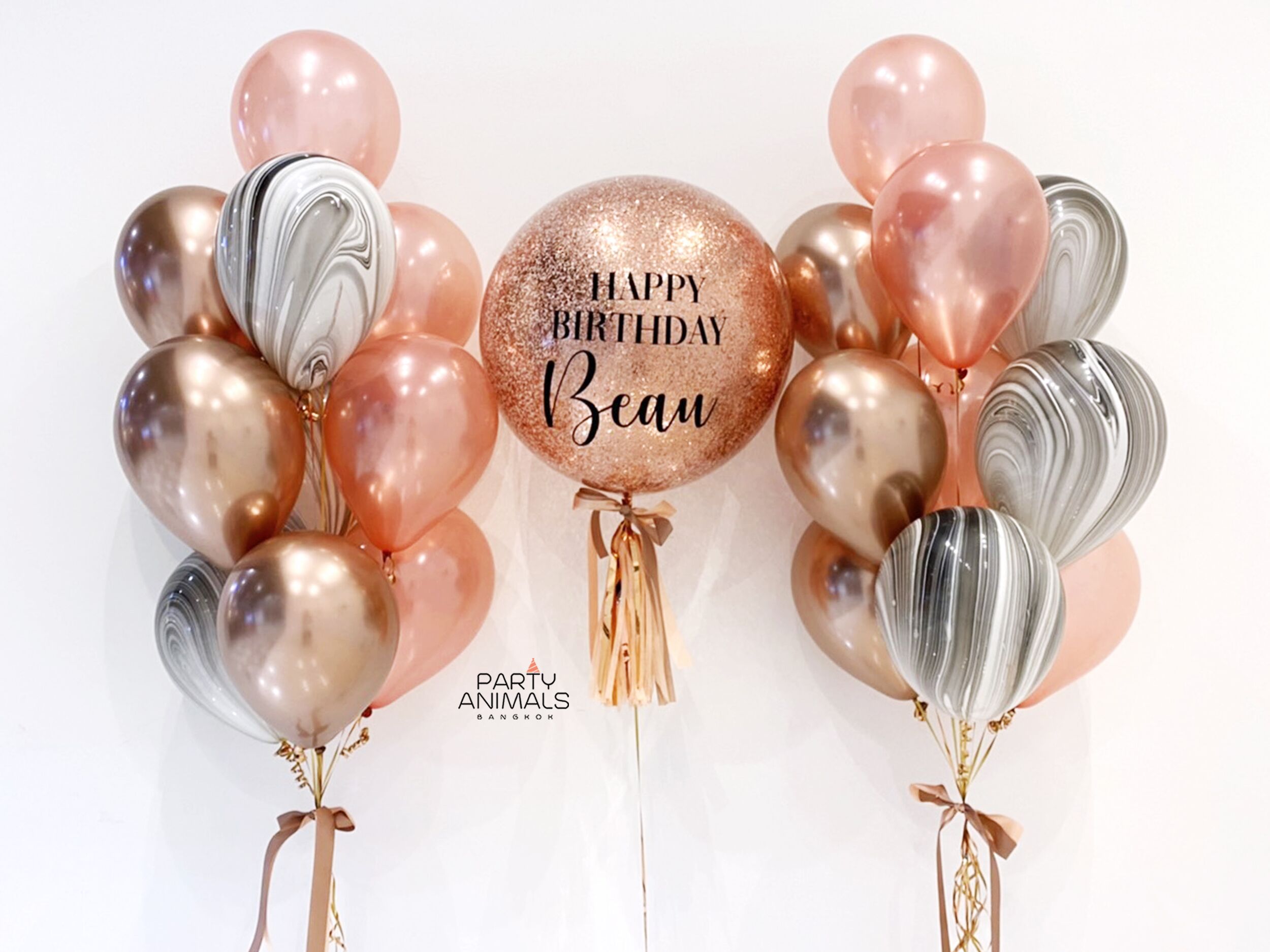 ลูกโป่งวันเกิด ลูกโป่งเซอร์ไพรส์ Birthday Balloon – Elegant Marble & Chrome Rose Gold Balloon Set (with helium) (21 pcs)