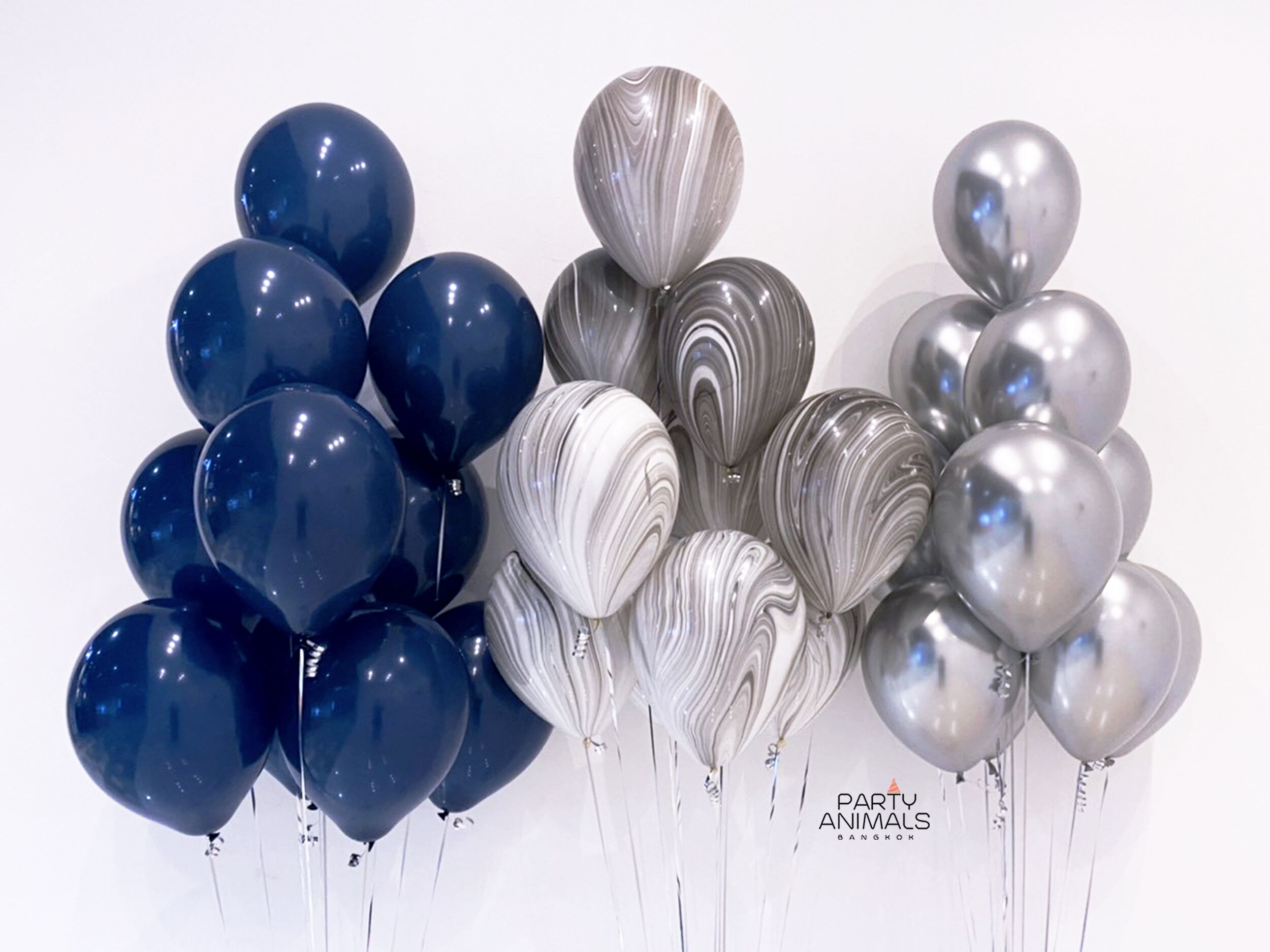 ลูกโป่งวันเกิด ลูกโป่งเซอร์ไพรส์ Birthday Balloon – ลูกโป่งลอยเพดาน Navy & Chrome Silver & Marble Ceiling Balloons (with helium) (30 pcs)