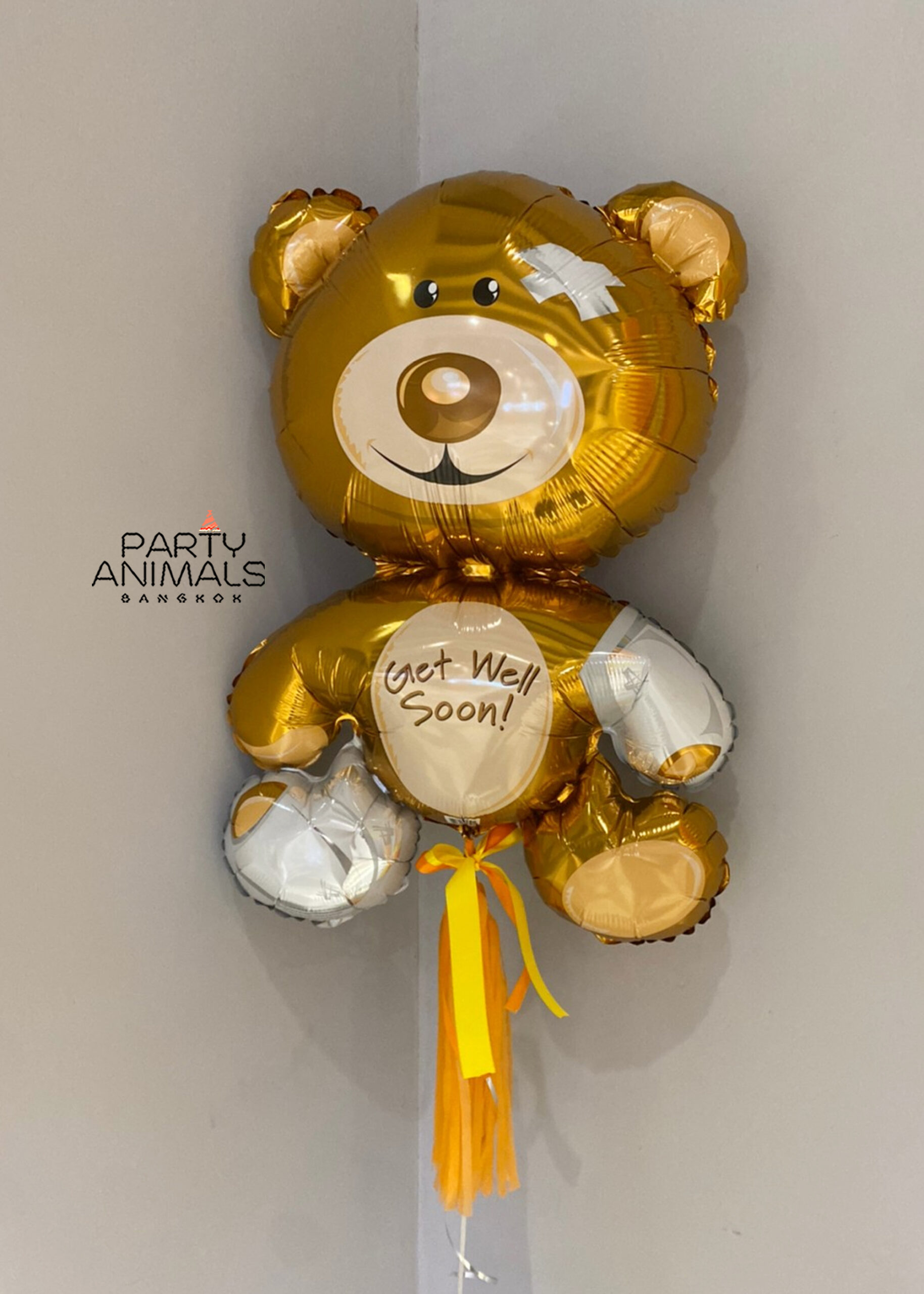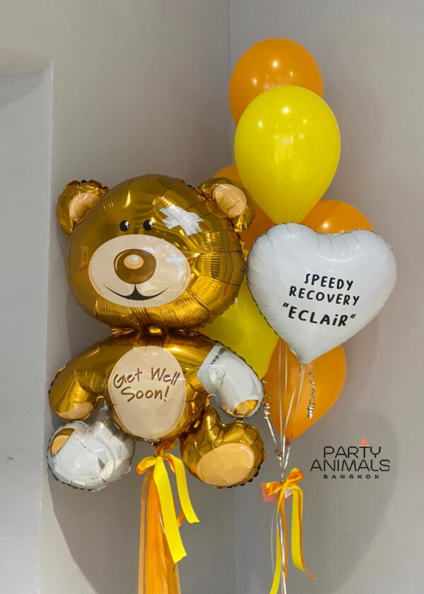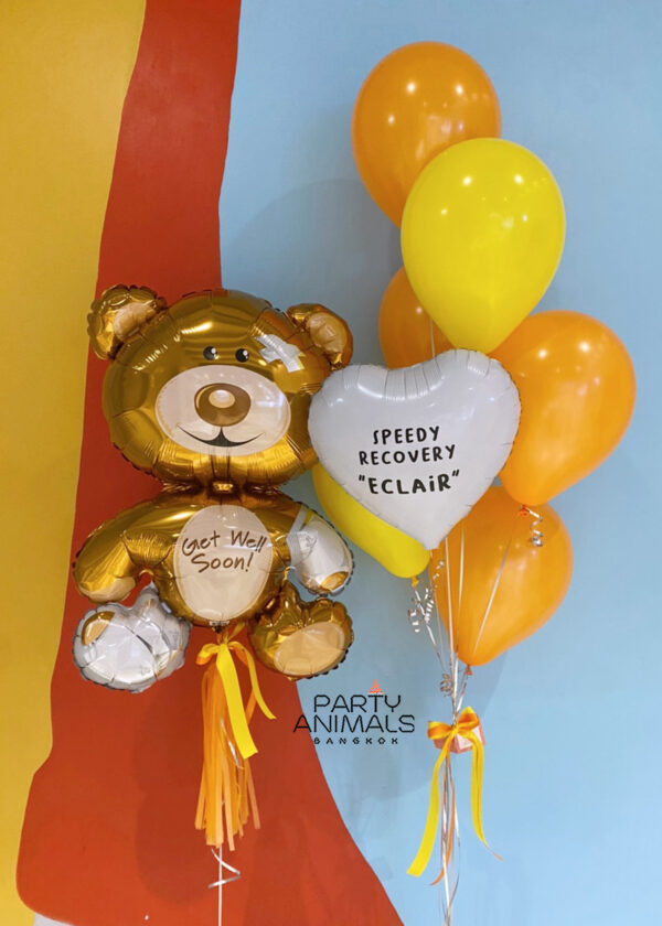 ลูกโป่งเยี่ยมไข้ ของขวัญเยี่ยมไข้ Get Well Soon Balloon – Sick Teddy Bear Brown & Orange Balloon Bouquets (with helium) (8 pcs)