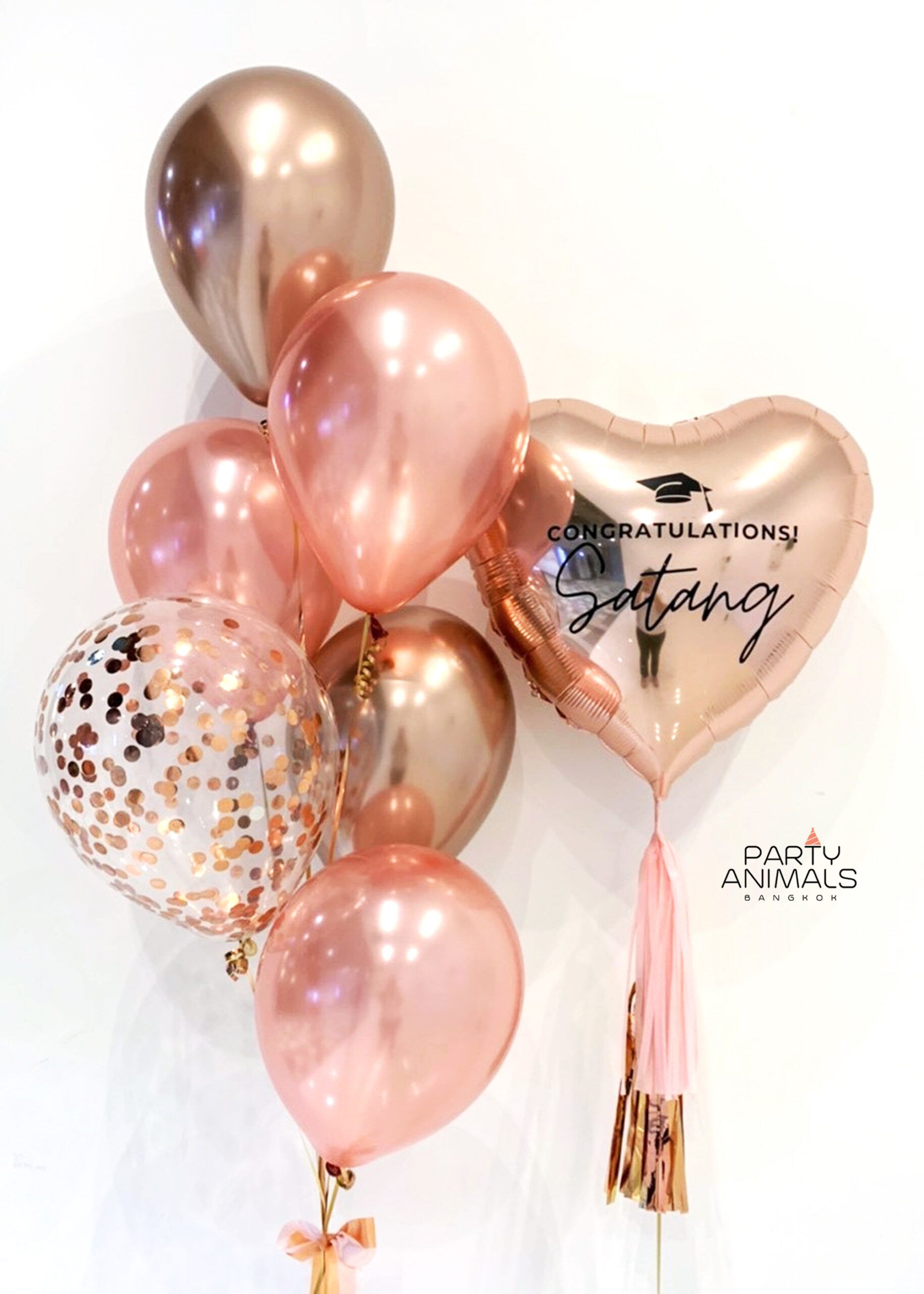 ลูกโป่งรับปริญญา Congratulations Graduation Balloon – 24″ Heart Rose Gold Balloon Set (with Helium) (7 pcs)