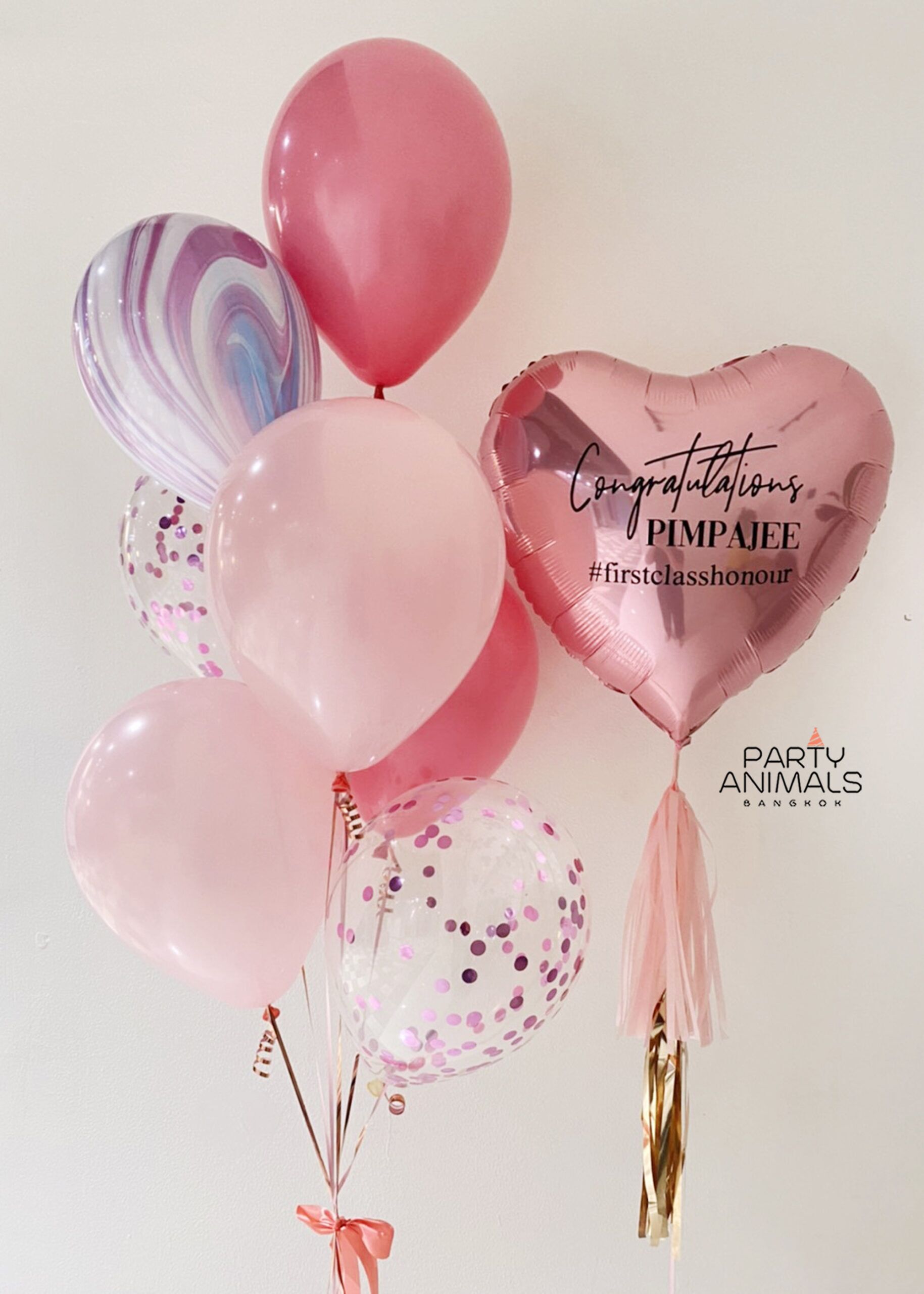 ลูกโป่งรับปริญญา Congratulations Graduation Balloon – 24″ Rose Heart-Shaped balloon Set (with Helium) (9 pcs)