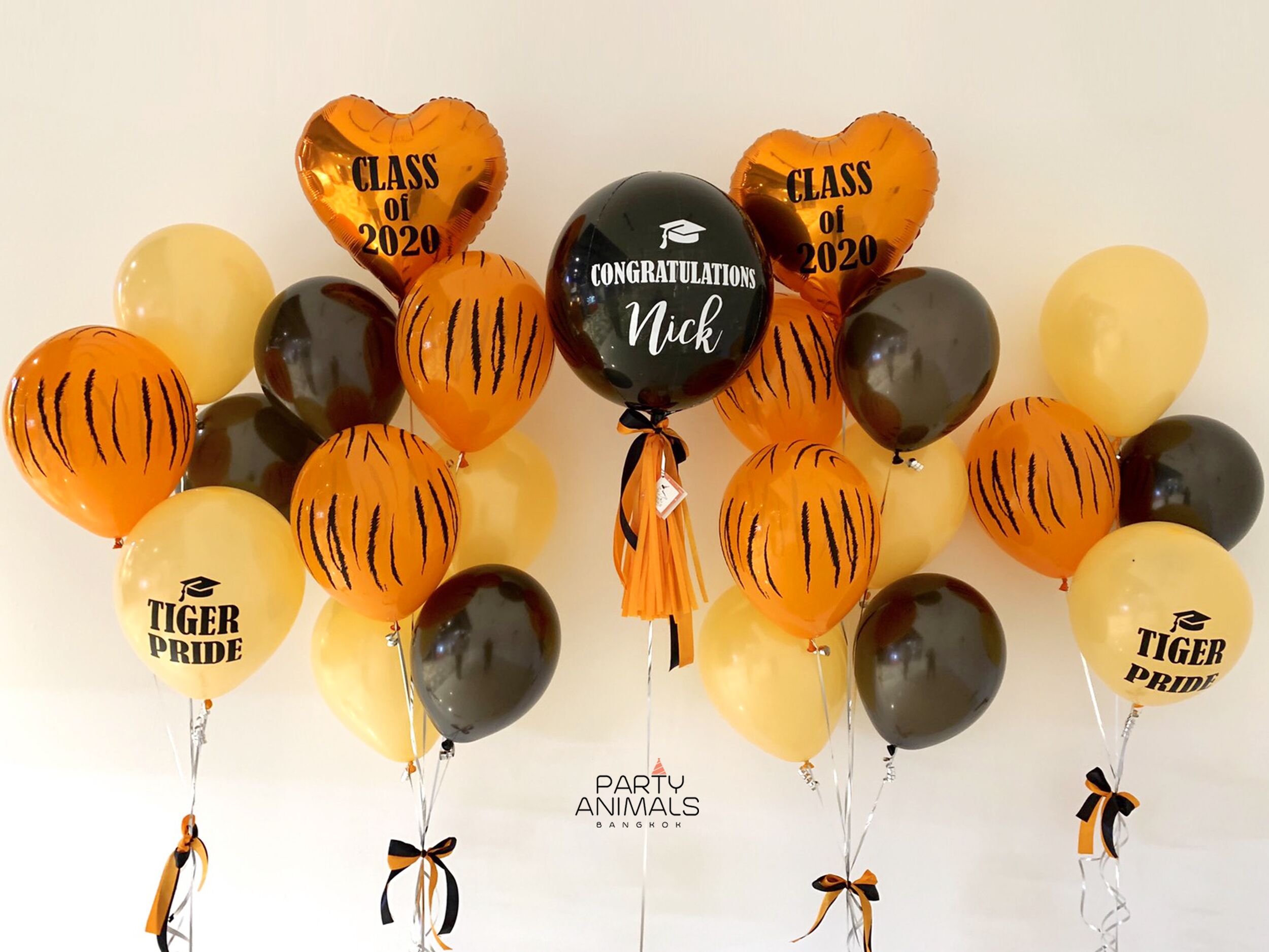 ลูกโป่งแสดงความยินดี Congratulations Balloon – Animals Safari Tiger Orange & Black Orbz Balloon Set (with Helium) (23 pcs)