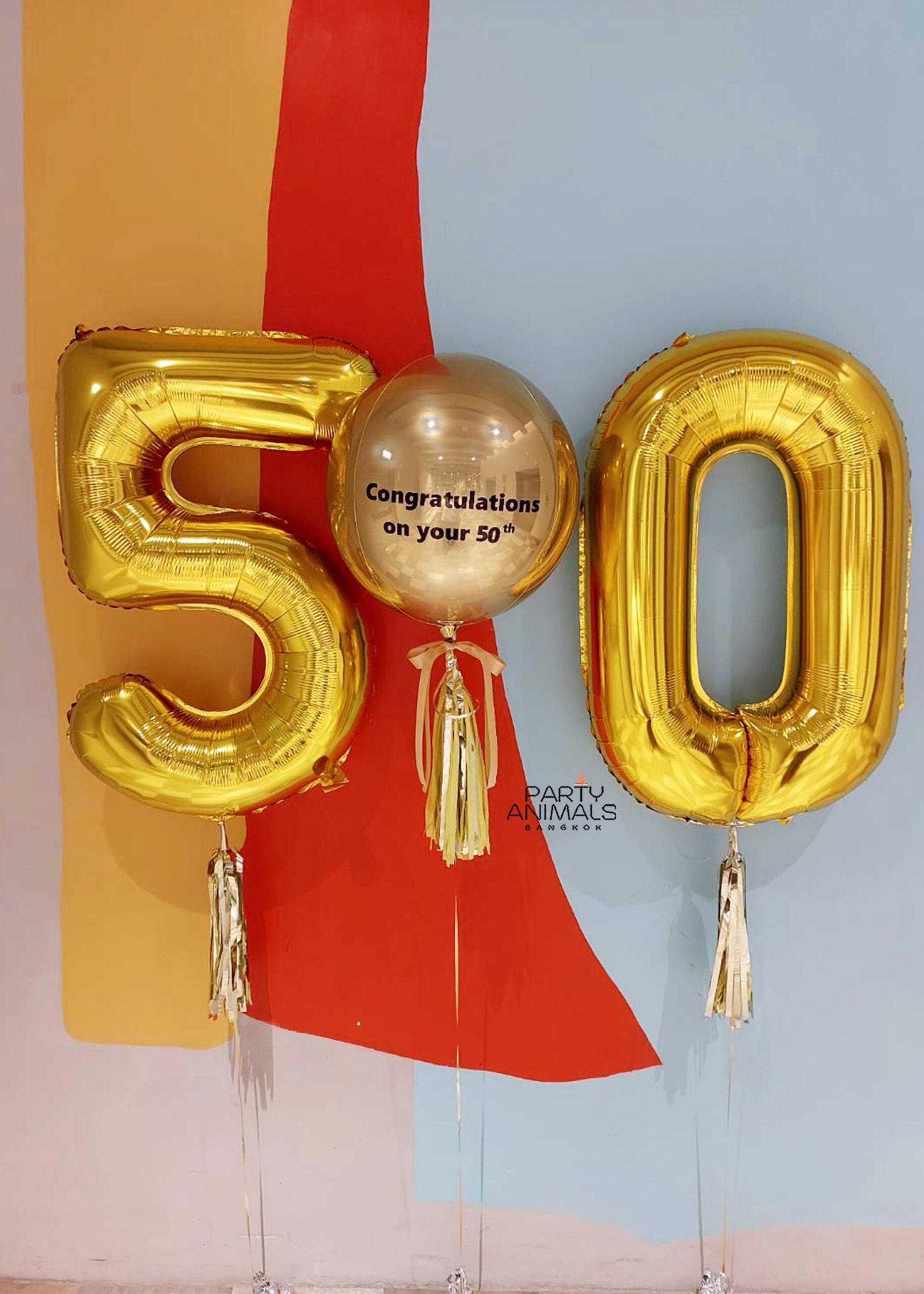 ลูกโป่งแสดงความยินดี Congratulations Balloon – Gold Orbz and Number 50 Balloon (with Helium) (3 pcs)