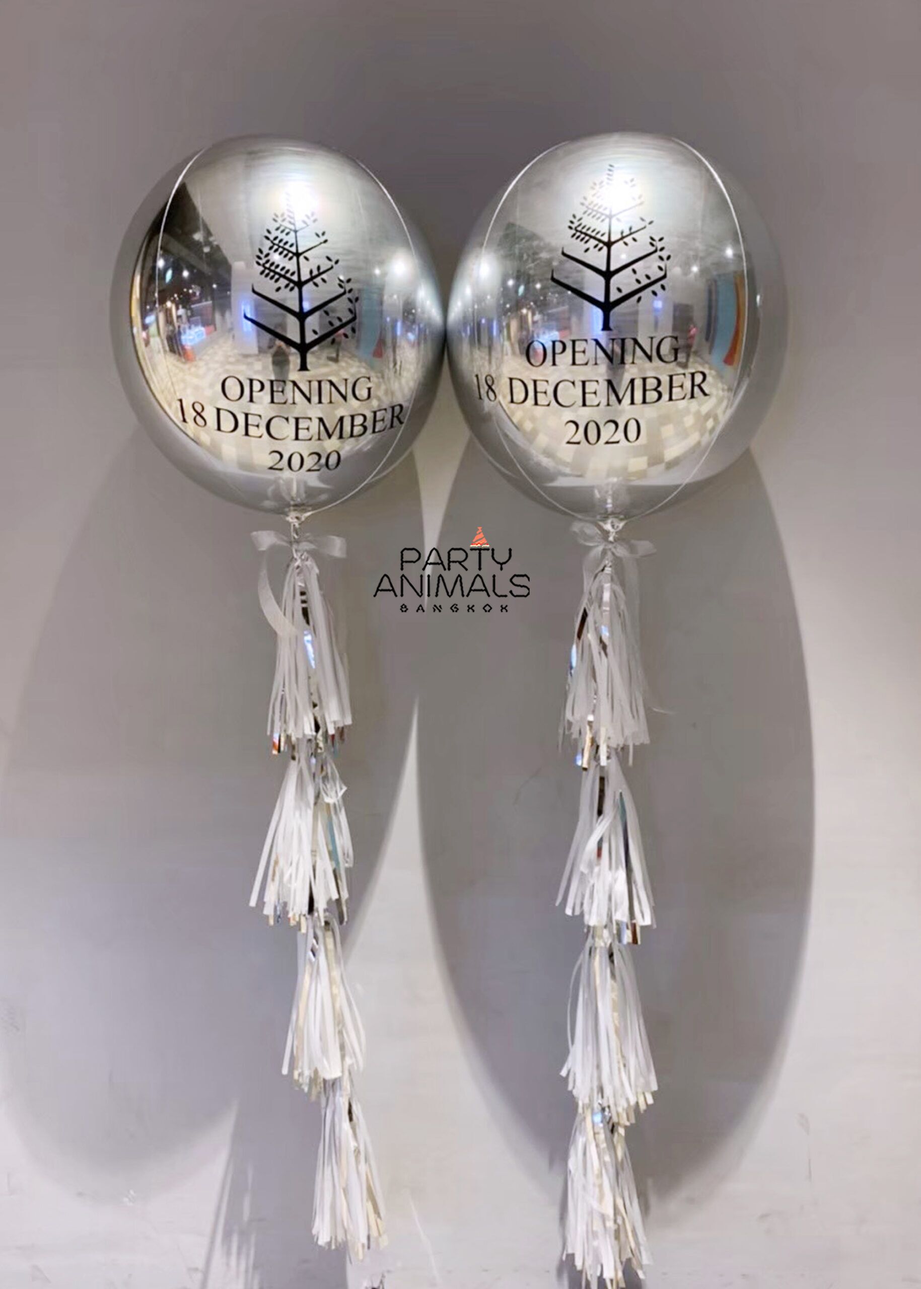 ลูกโป่งแสดงความยินดีเปิดร้านใหม่ Grand Opening Balloon – 24″ Silver Orbz Balloons (with Logo) (with Helium) (2 pcs) ราคารวม Logo