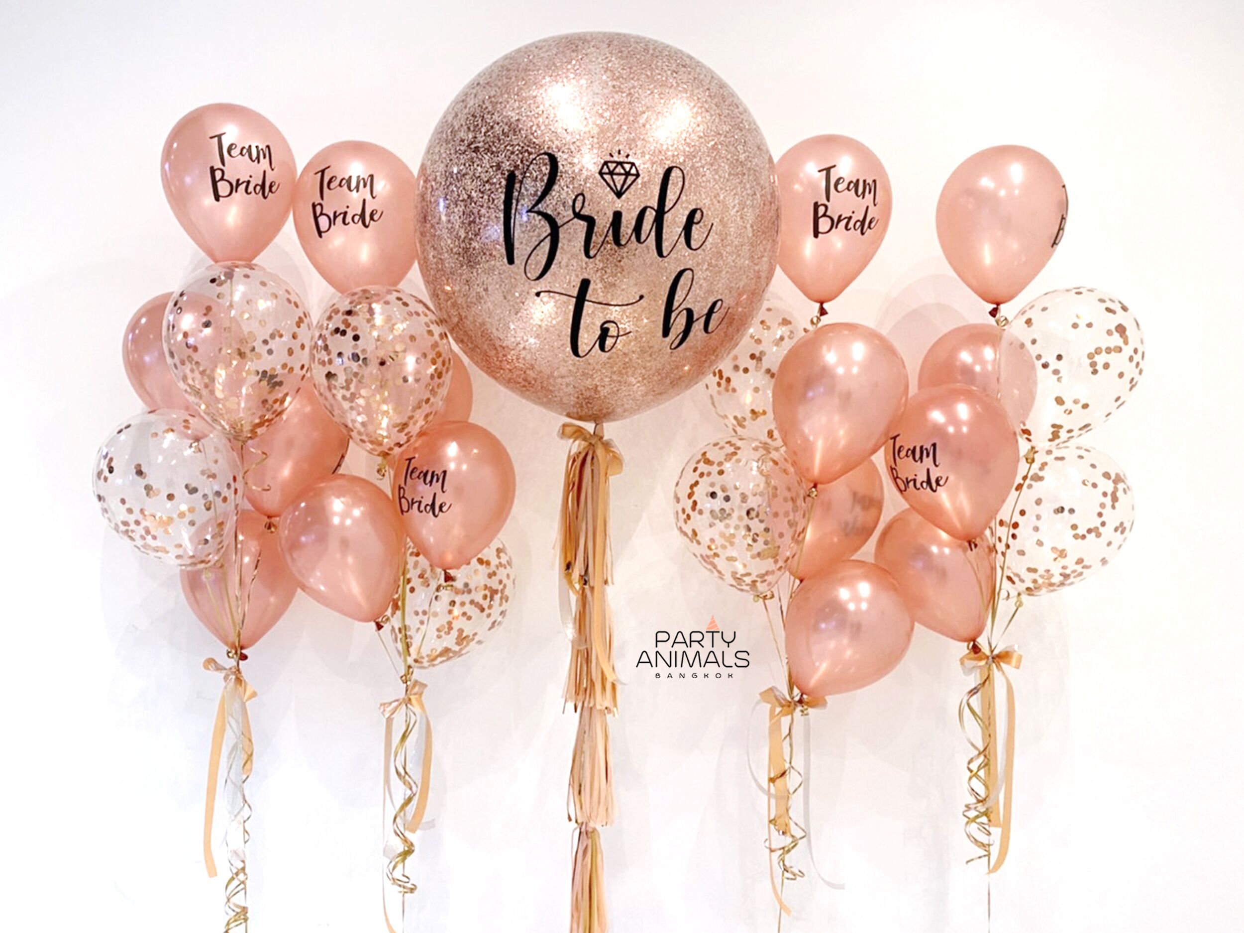 ลูกโป่งปาร์ตี้สละโสด ลูกโป่งเฮนไนท์ Hen Party Balloon – 36″ Bride to be & Team Bride Rose Gold Balloon Set (with Helium) (25 pcs)