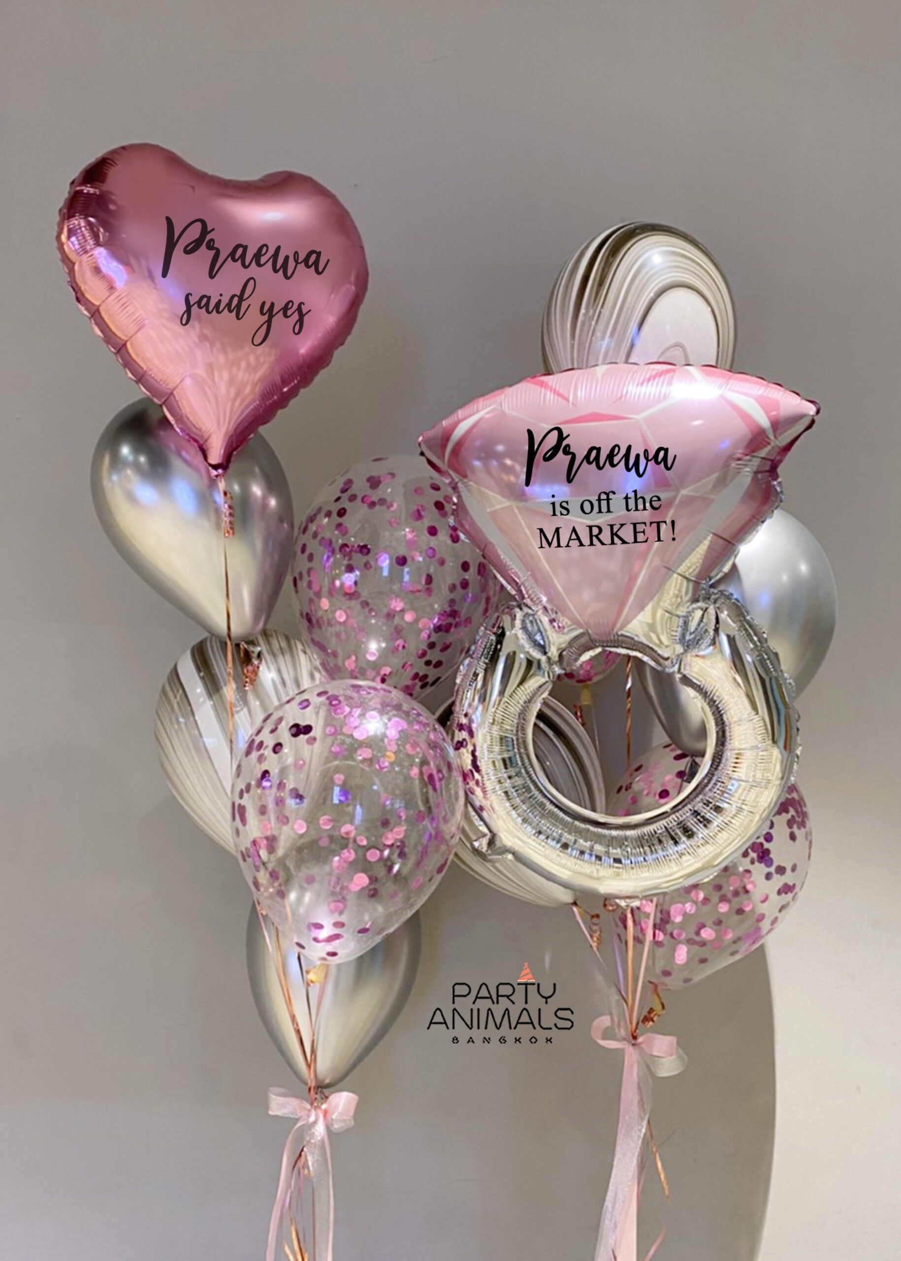 ลูกโป่งปาร์ตี้สละโสด ลูกโป่งเฮนไนท์ Hen Party Balloon – She’s Off the Market! Diamond Ring Pink & Silver Balloon Set (with helium) (11 pcs)