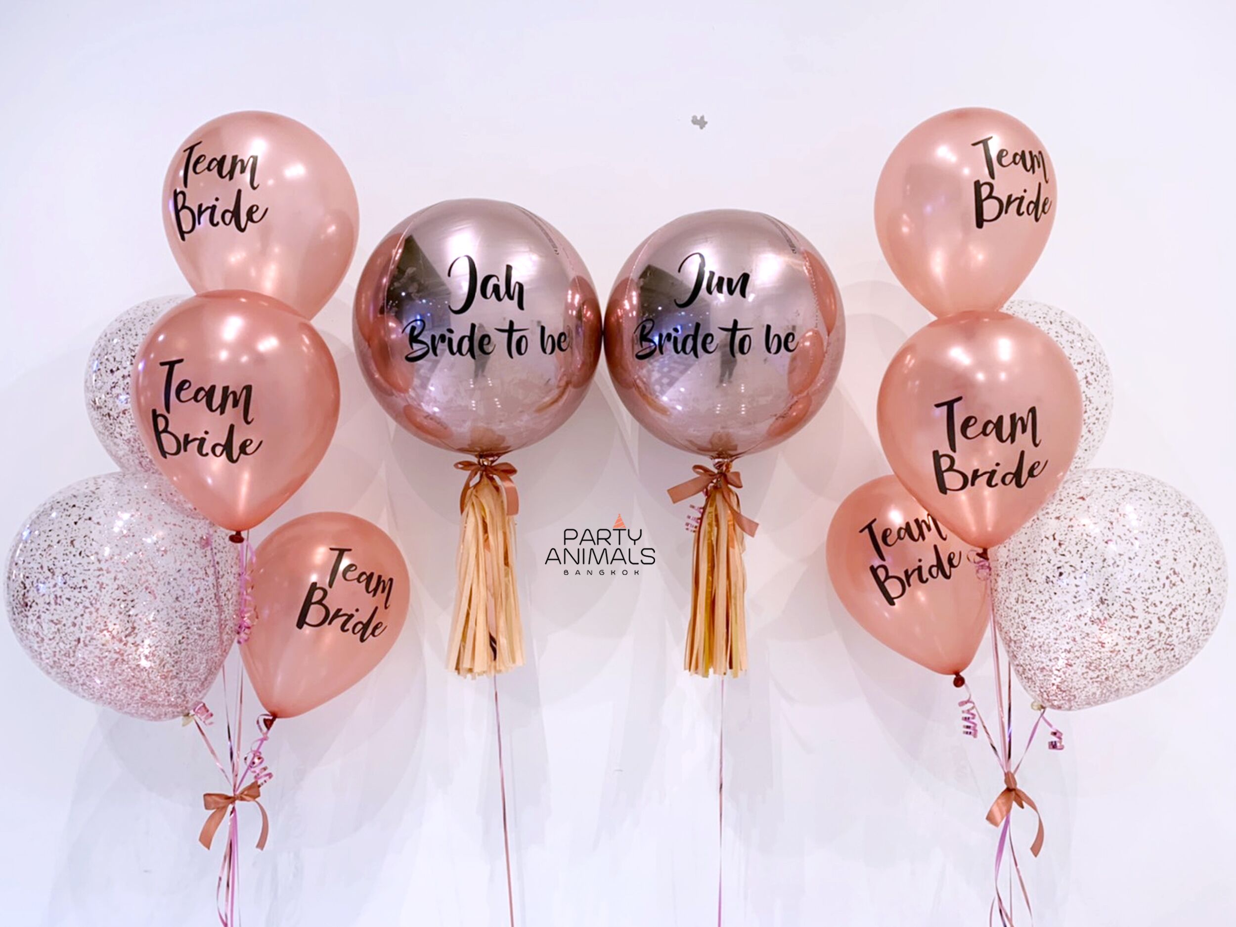 ลูกโป่งปาร์ตี้สละโสด ลูกโป่งเฮนไนท์ Hen Party Balloon – Brides to be & Team Bride Rose Gold Orbz Set (with Helium) (12 pcs)