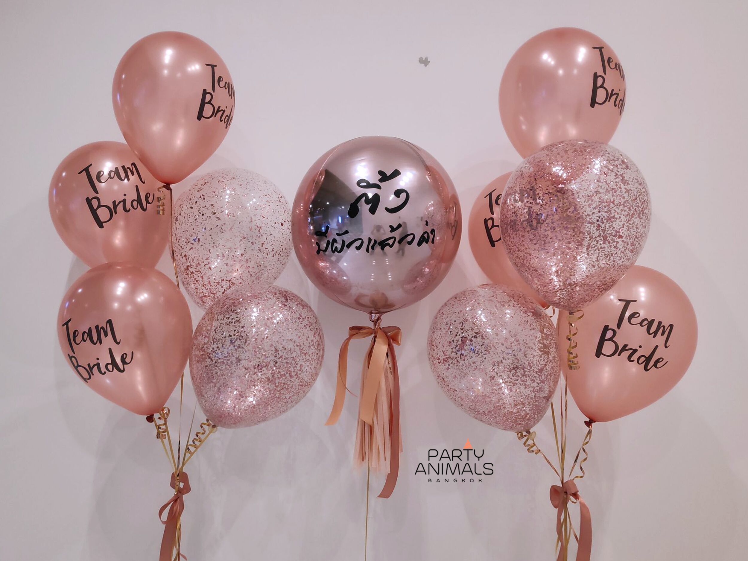 ลูกโป่งปาร์ตี้สละโสด ลูกโป่งเฮนไนท์ Hen Party Balloon – Bride to be & Team Bride มีผัวแล้วค่า Rose Gold Orbz Set (with Helium) (11 pcs)
