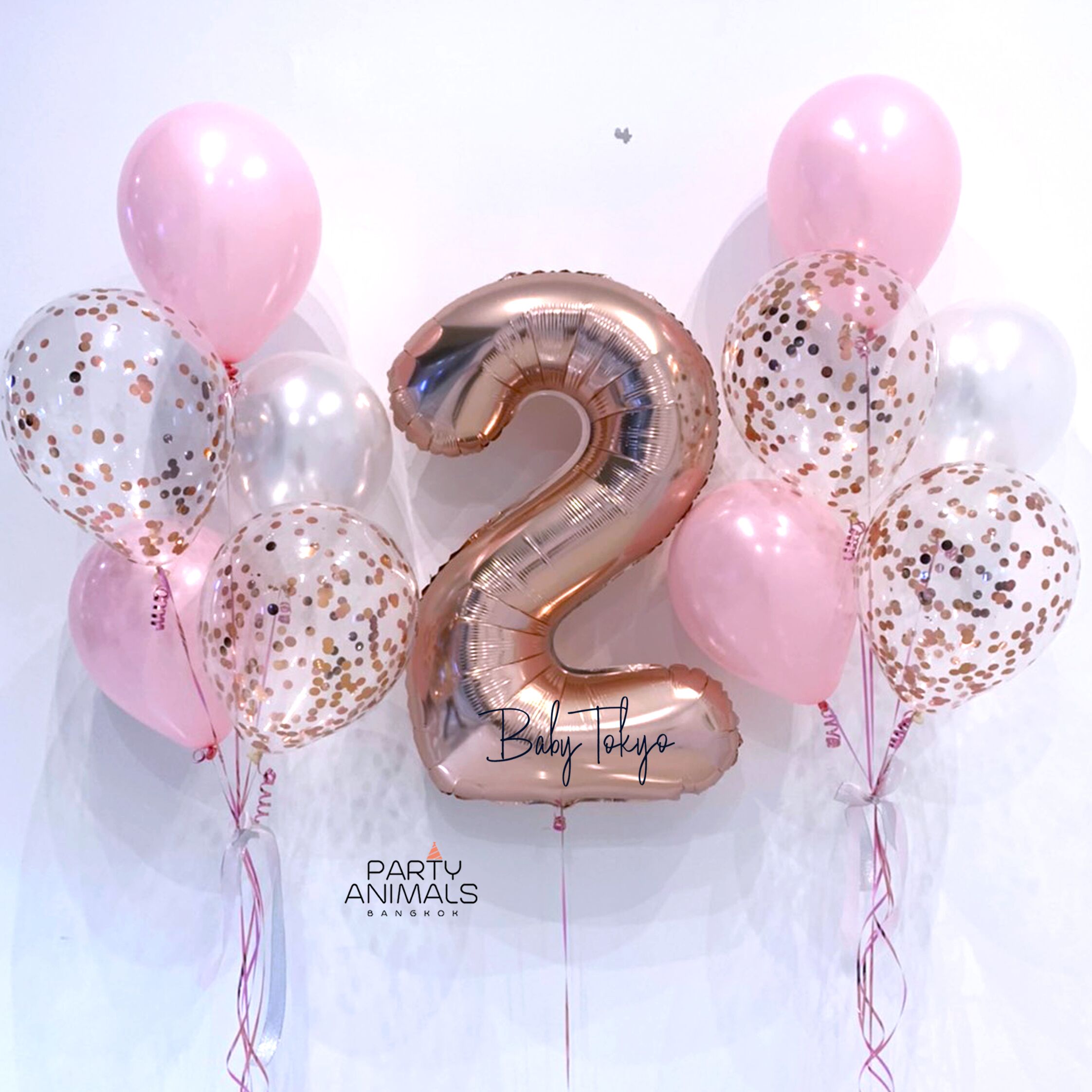 ลูกโป่งวันเกิดเด็ก Kid’s Birthday Balloon – Happy 2nd Birthday Rose Gold & Pink Balloon Set (with Helium) (11 pcs)