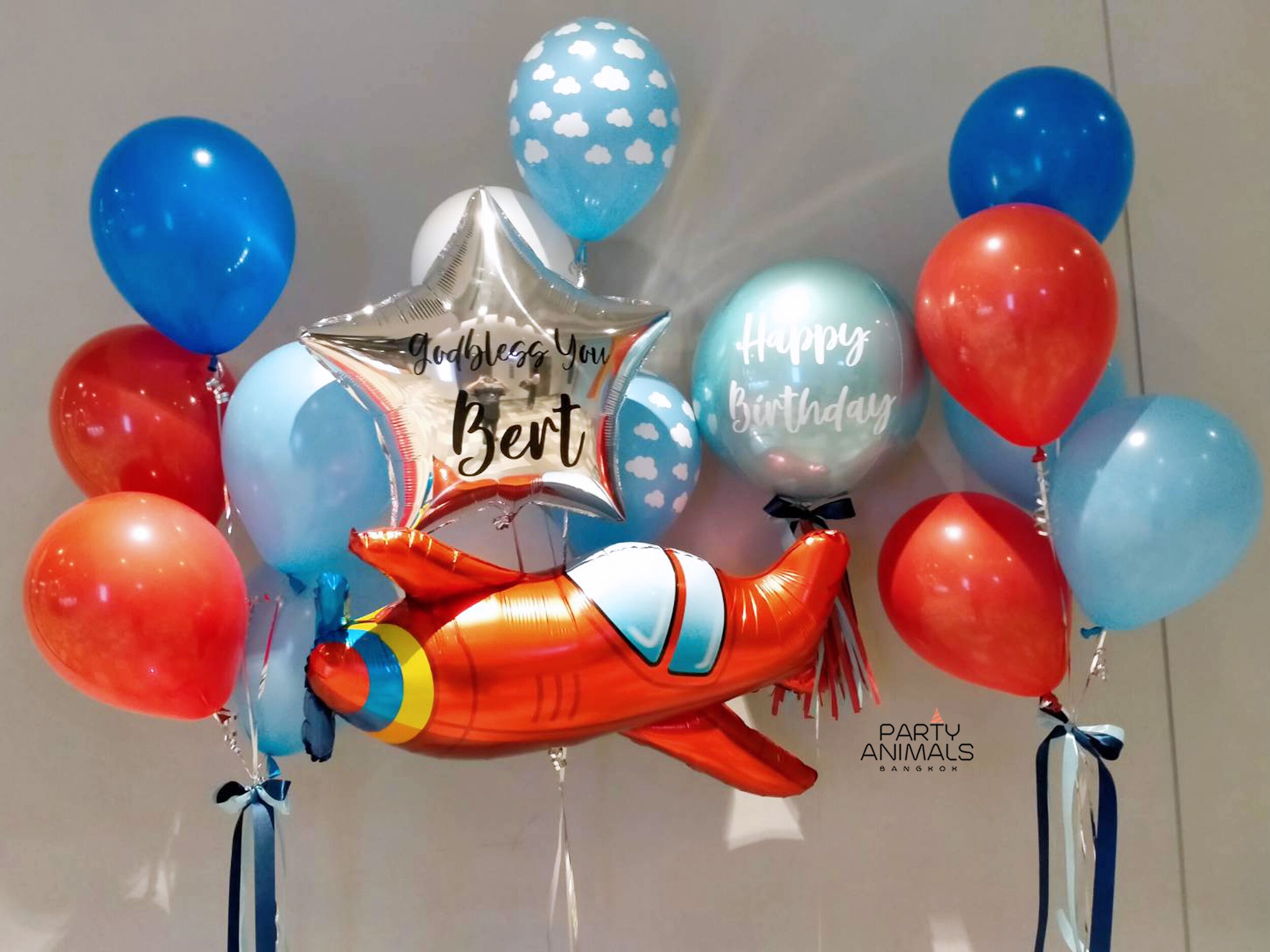 ลูกโป่งวันเกิดเด็ก Kid’s Birthday Balloon – ลูกโป่งเครื่องบิน Red & Blue Airplane & Baby Blue Orbz Balloon Set (with Helium) (17 pcs)