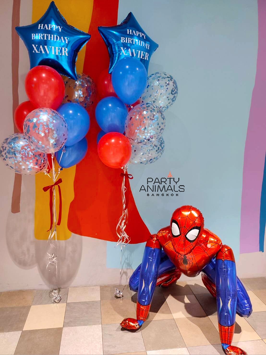 ลูกโป่งวันเกิดเด็ก Kid’s Birthday Balloon – ลูกโป่งสไปเดอร์แมน Spider Man 3D Balloon (Air-filled) & Blue Red Balloon Bouquet (with Helium) (21 pcs)