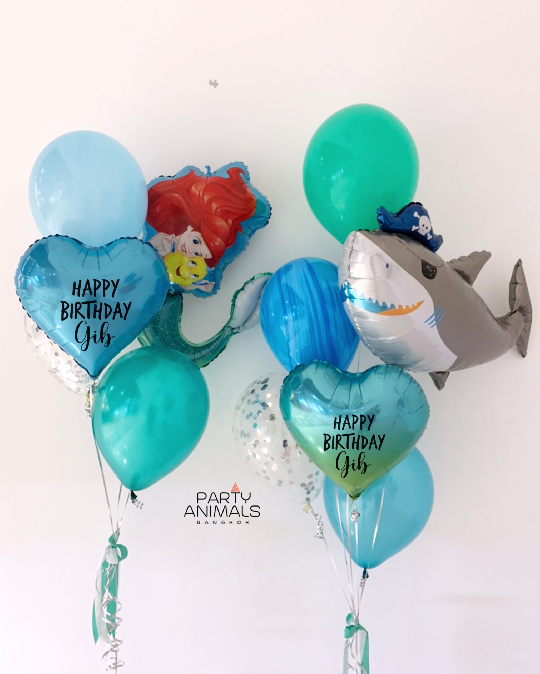 ลูกโป่งวันเกิดเด็ก Kid’s Birthday Balloon – Disney Princess Ariel Little Mermaid UNDER THE SEA & Shark Balloon Set (with Helium) (12 pcs)