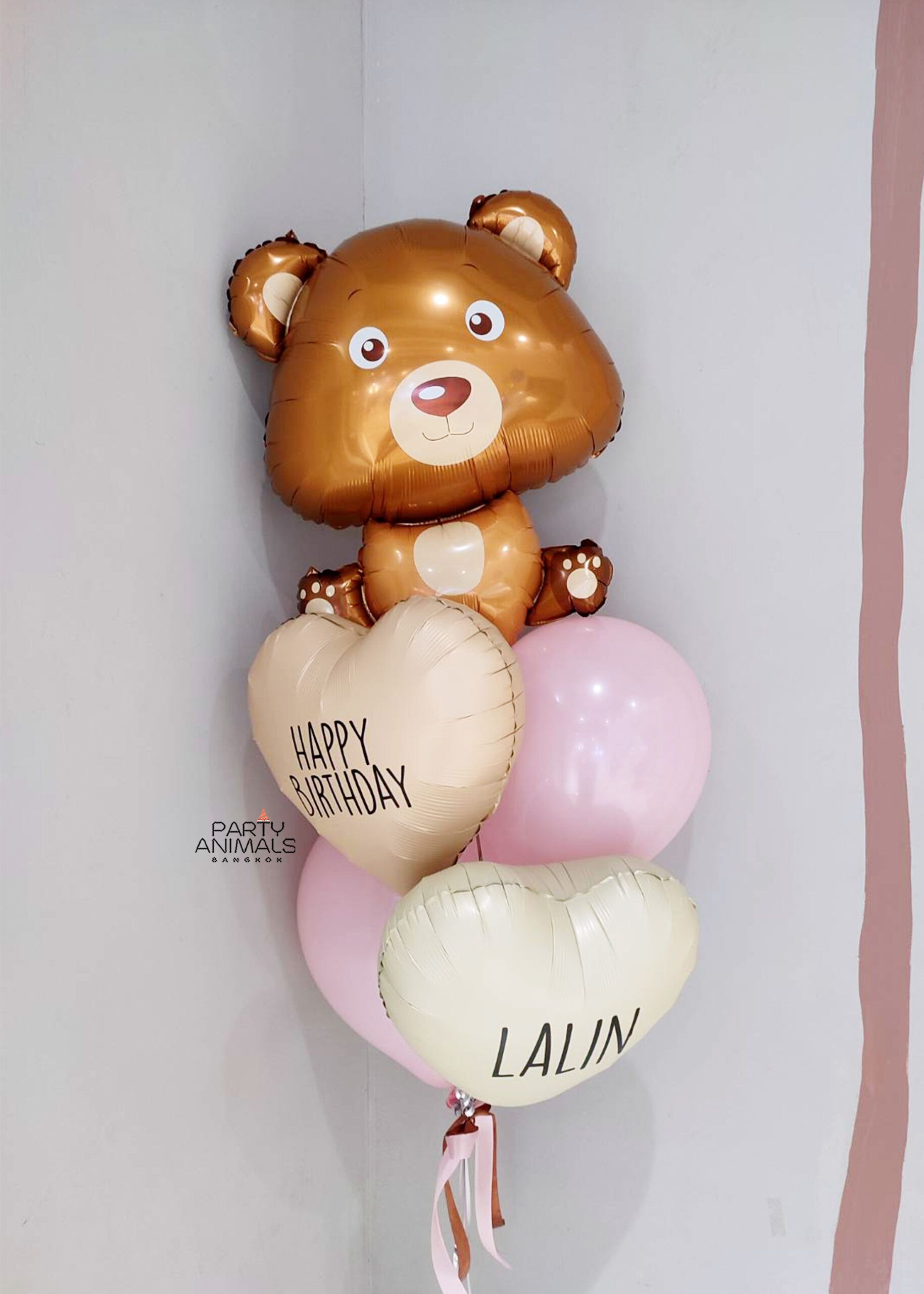 ลูกโป่งวันเกิดเด็ก Kid’s Birthday Balloon – Korean-Styled Bear & Pink & Cream Heart Balloon Bouquet (with helium) (5 pcs)