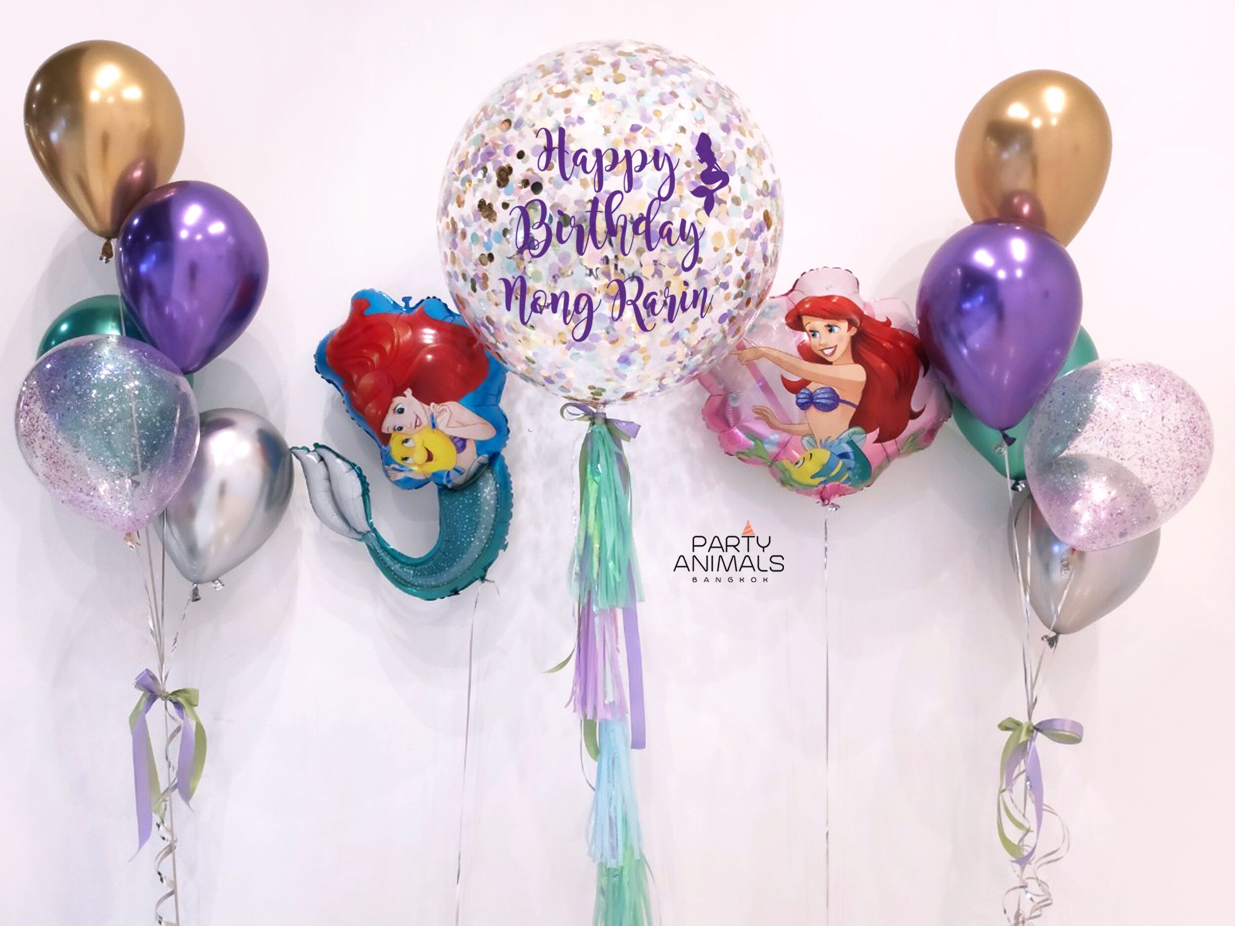 ลูกโป่งวันเกิดเด็ก Kid’s Birthday Balloon – Little Mermaid Disney Princess Under the Sea Purple & Green 26″ Happy Birthday Balloon Set (with Helium)