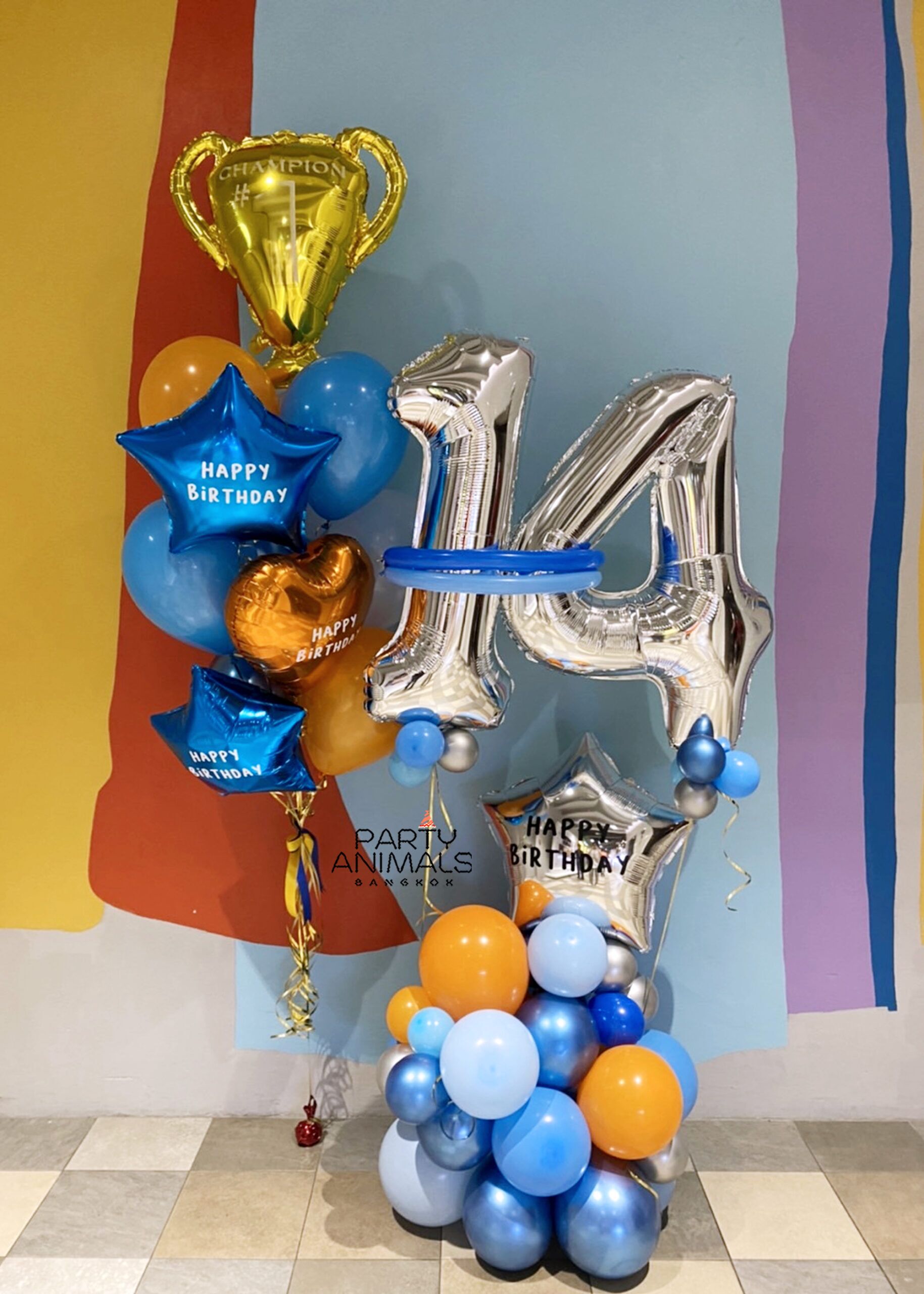 ลูกโป่งวันเกิดเด็ก Kid’s Birthday Balloon – Number 14th Birthday Blue & Gold Balloon Centerpiece (Air-filled & with Helium)