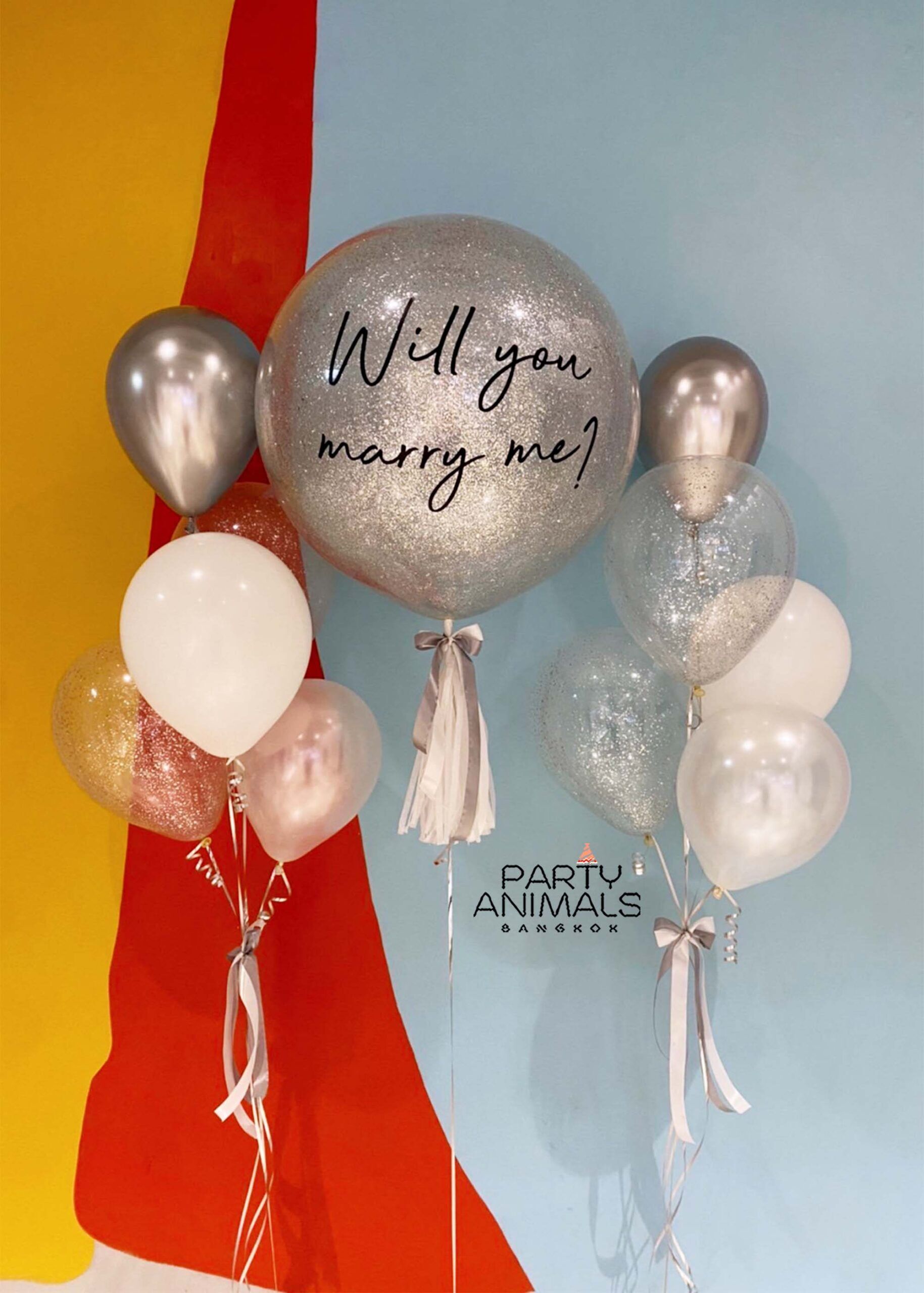 ลูกโป่งขอแต่งงาน Will You Marry Me? Balloon – Silver & White Balloon Set (with Helium) (11 pcs)