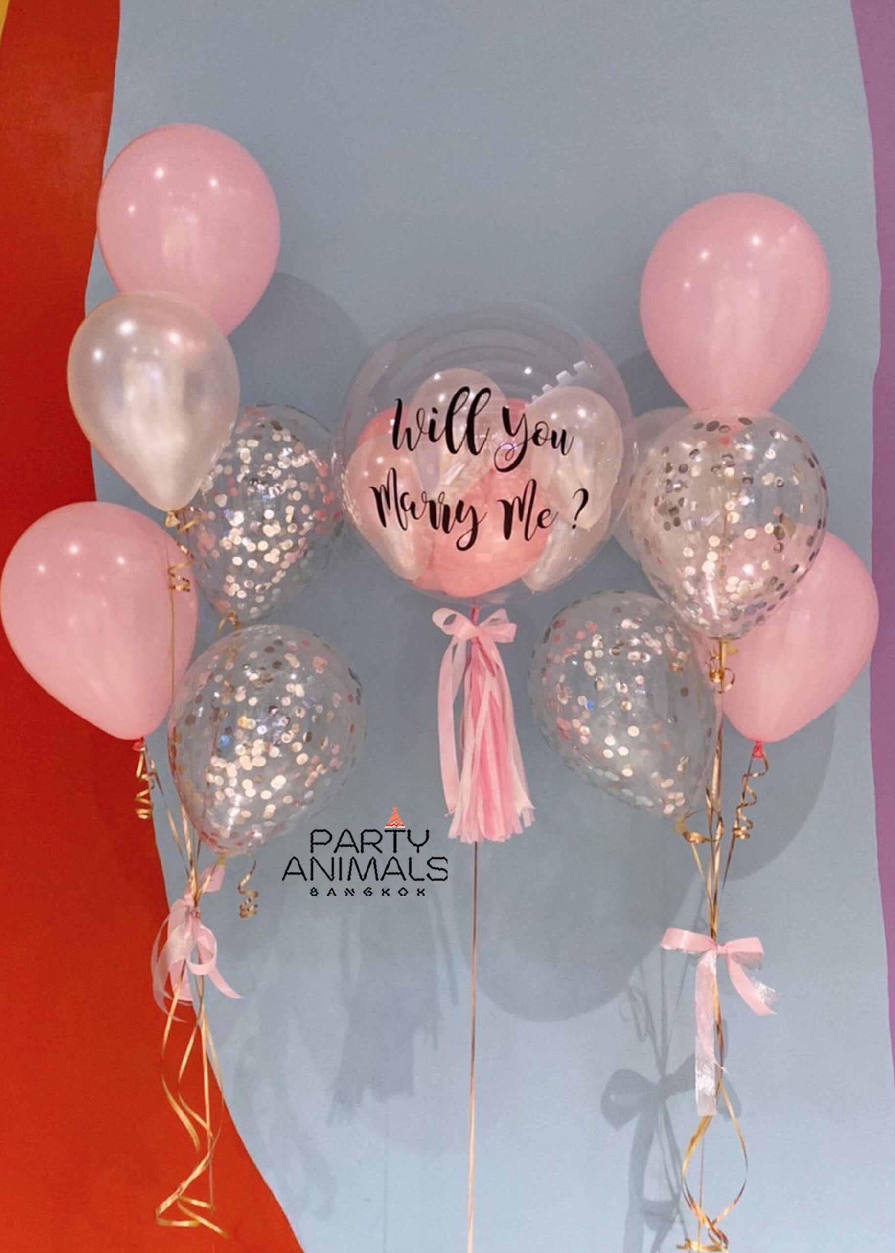 ลูกโป่งขอแต่งงาน Will You Marry Me? Balloon – Valentine Pink & Silver Tiny Balloons in Big PVC Balloon (24 inch) (with Helium) (11 pcs)