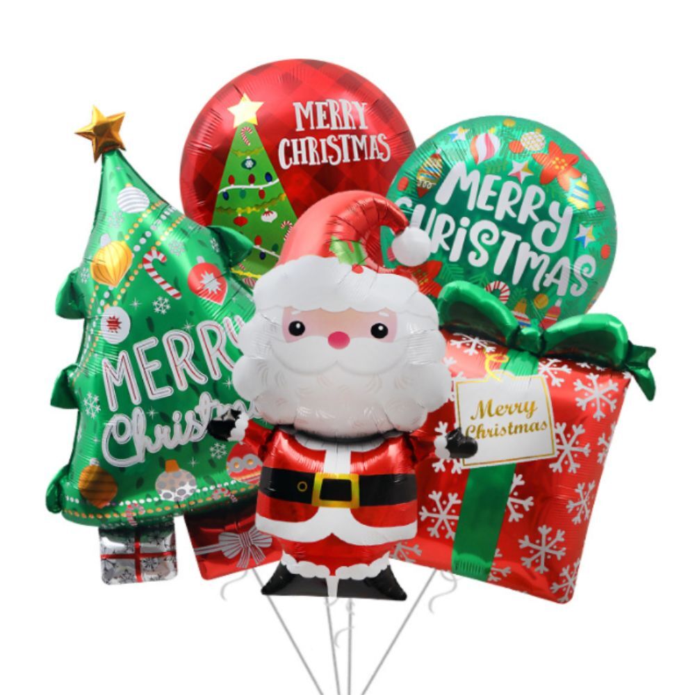 ลูกโป่งวันคริสต์มาส ลูกโป่งฟอยล์ Merry Christmas Tree Santa & Present Box Foil Balloon (with helium) (5 pcs)