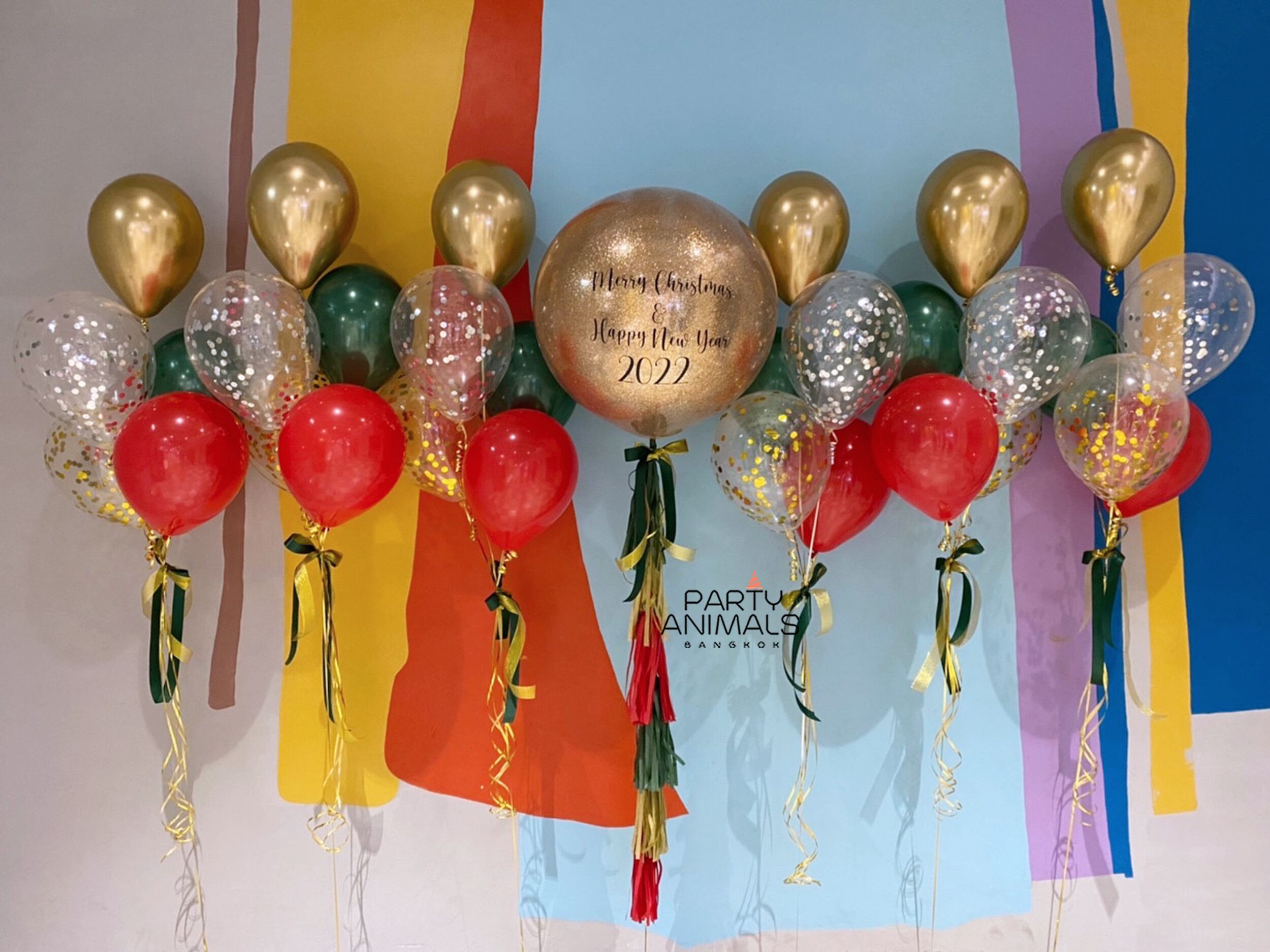 ลูกโป่งคริสมาสต์ ลูกโป่งปีใหม่ Merry Christmas & New Year Decoration – Red & Gold Balloon Set (with Helium) (21 pcs)