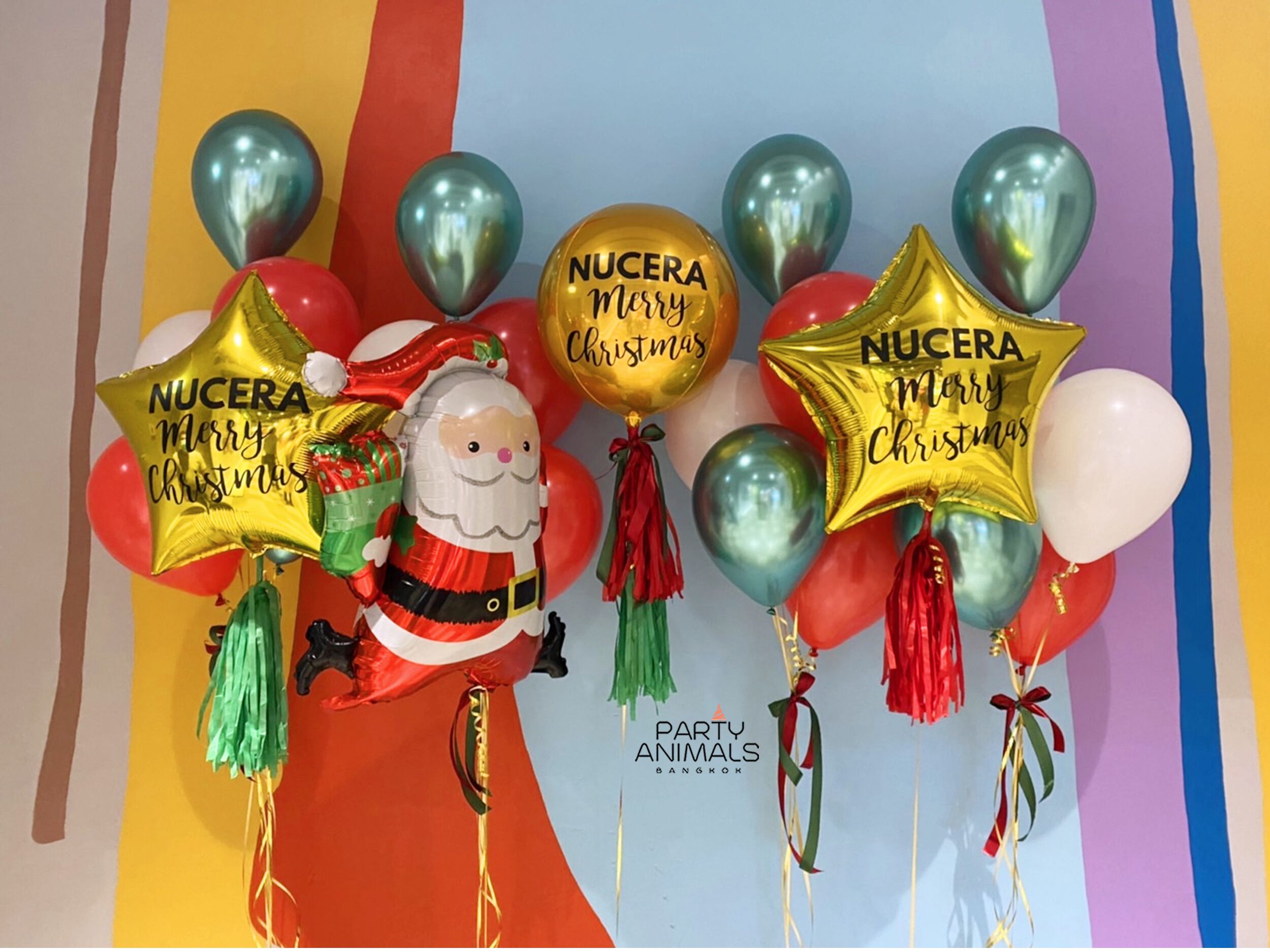 ลูกโป่งคริสมาสต์ ลูกโป่งปีใหม่ Merry Christmas & New Year Decoration – Red & Green Balloon Set (with Helium) (24 pcs)
