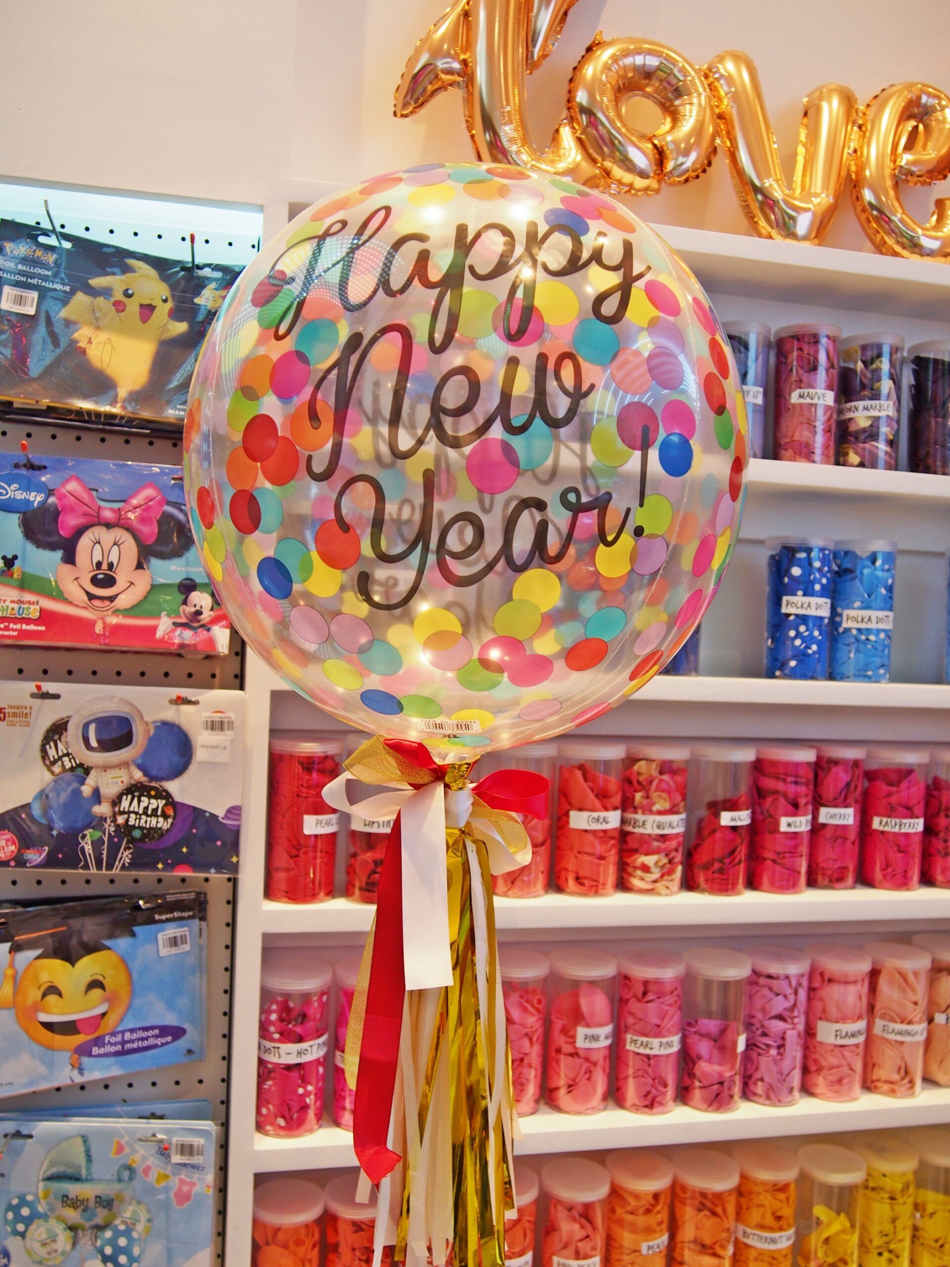 ลูกโป่งคริสมาสต์ ลูกโป่งปีใหม่ Merry Christmas & New Year Decoration – Colorful Dots Happy New Year Orbz Balloon (with Helium) (1 piece)