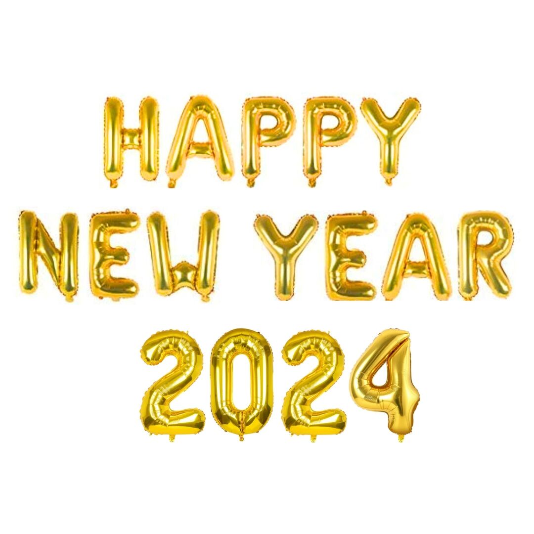 ลูกโป่งวันปีใหม่ ลูกโป่งฟอยล์ Happy New Year 2024 Gold Foil Balloon (16 inches) (Air-filled) (16 pcs) ราคาไม่รวมเป่า