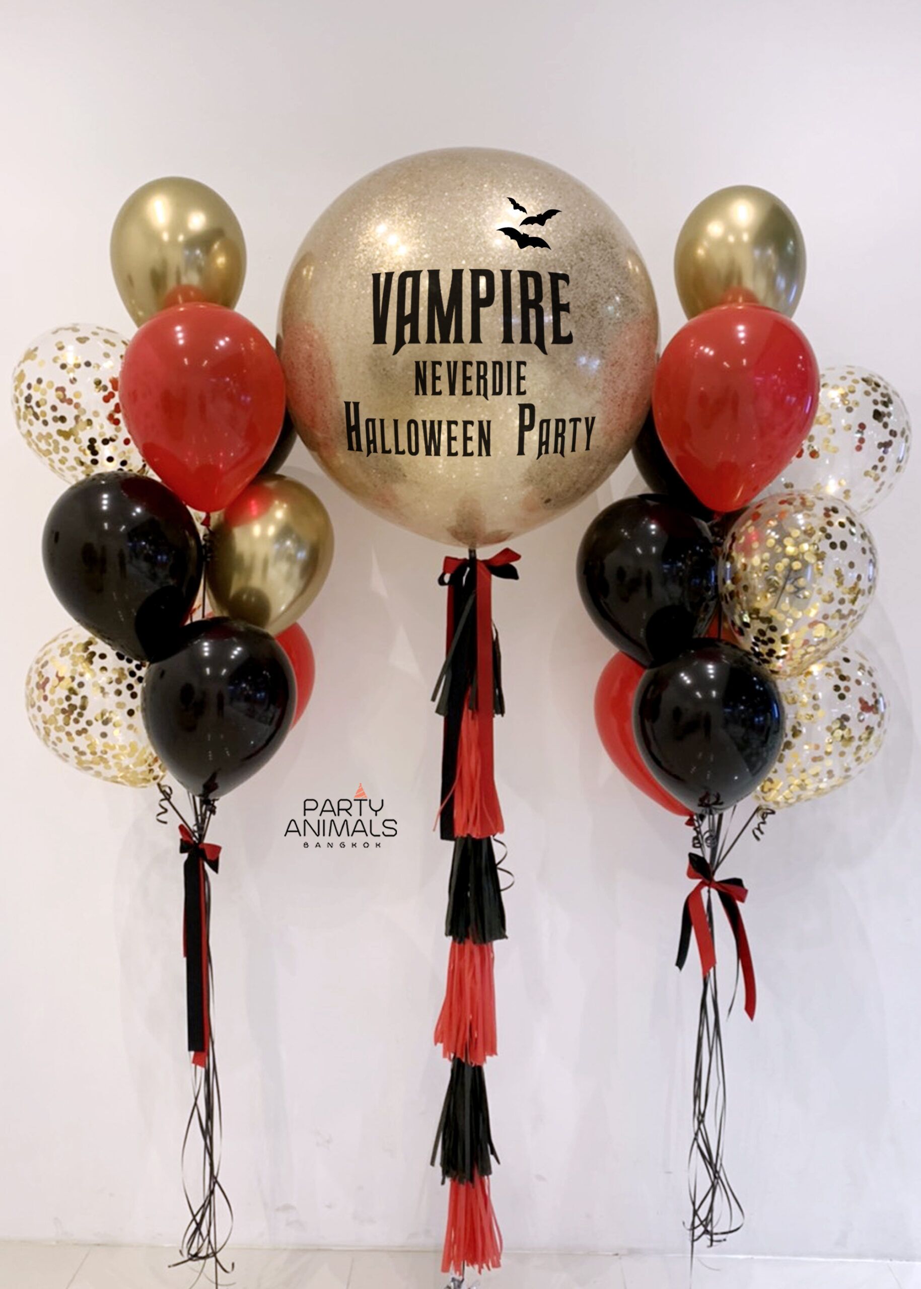 ลูกโป่งวันฮาโลวีน Halloween Balloon Decoration – Never Die Vampire Party Black Red & Gold 36″ Balloon Set (with helium) (21 pcs)