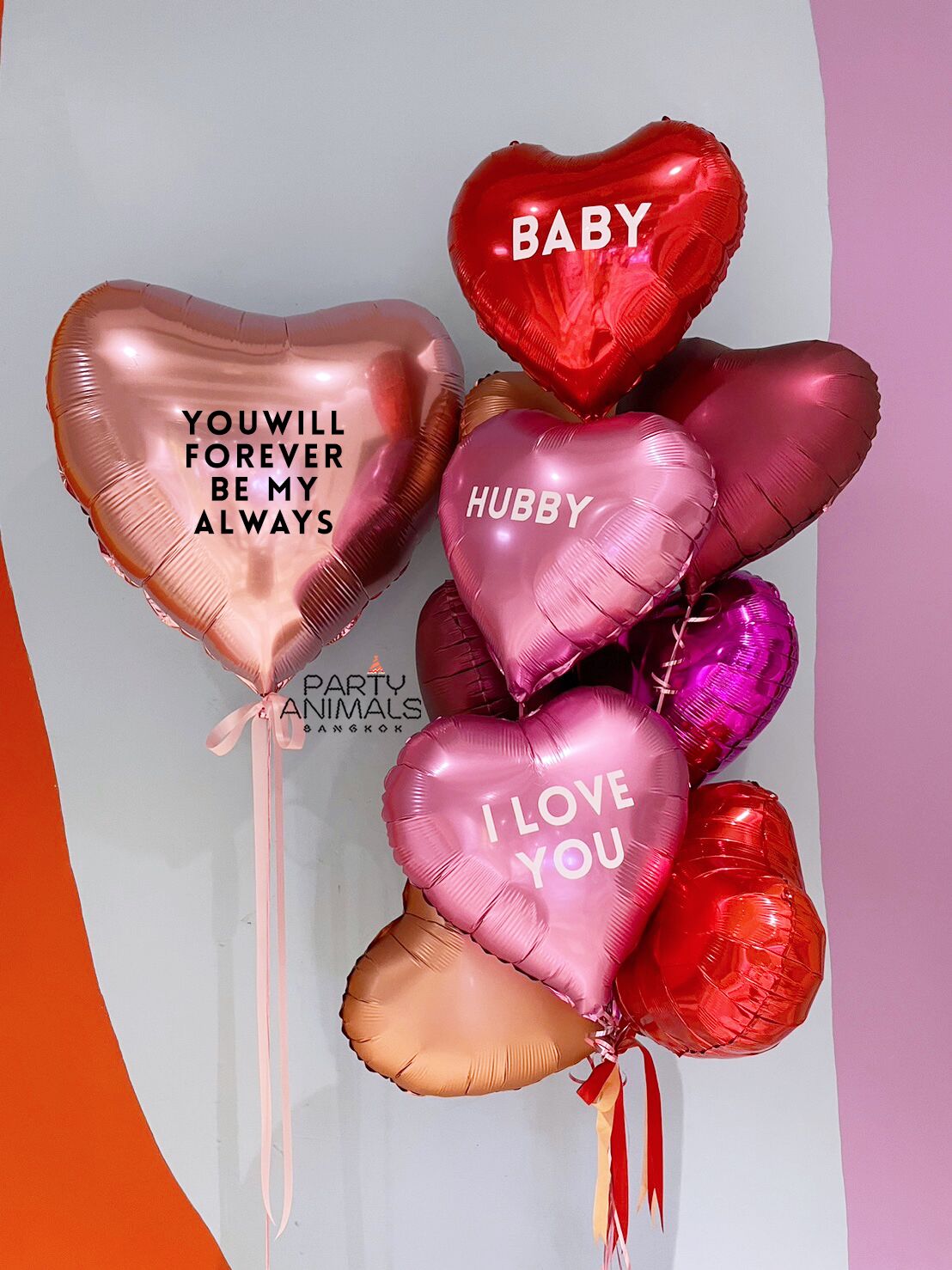 ลูกโป่งวาเลนไทน์ Valentine’s Day Balloon – Mixed Heart Foil Balloon Set (with Helium) (10 pcs)