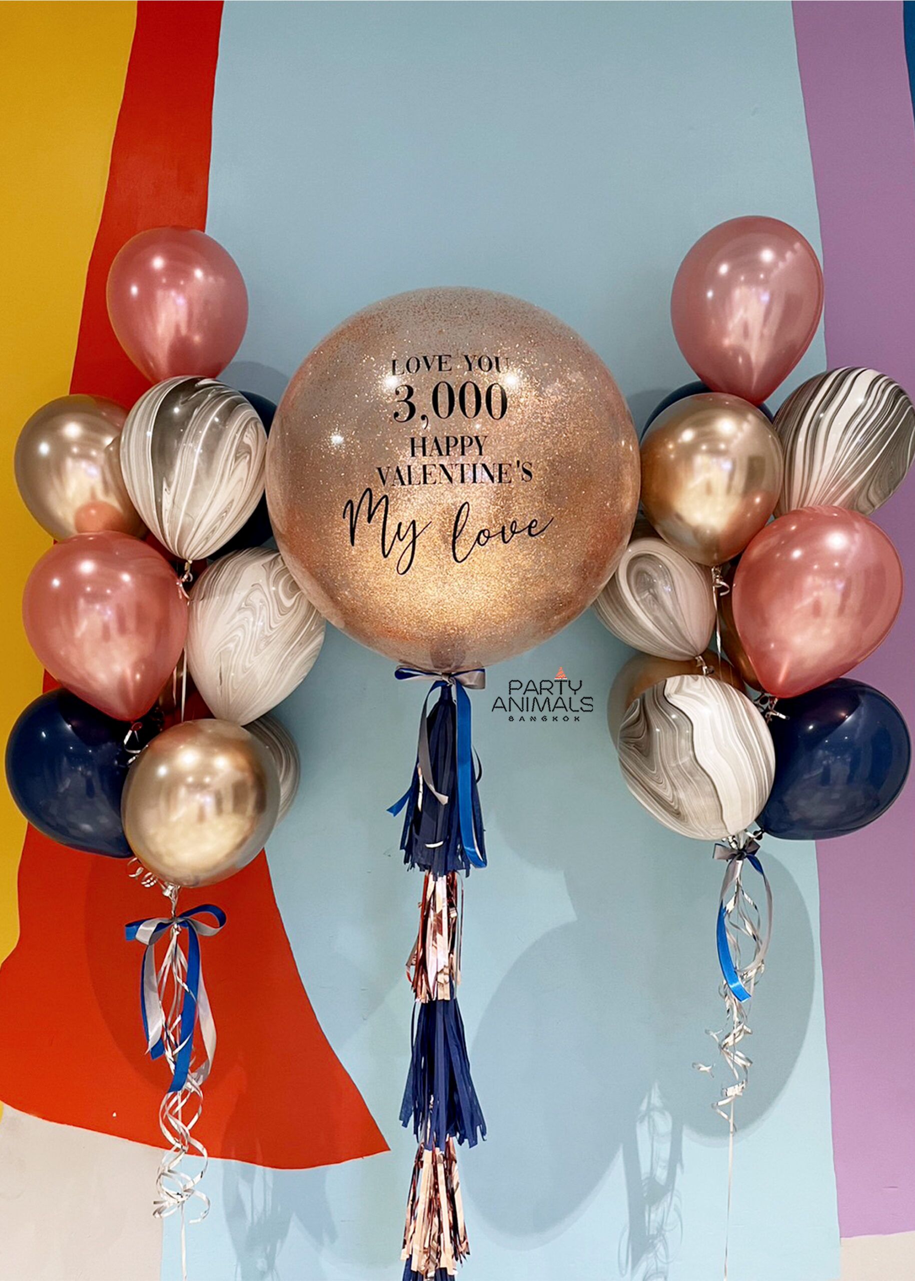 ลูกโป่งวาเลนไทน์ Valentine’s Day Balloon – Navy & Rose Gold Balloon Set (with Helium) (21 pcs)