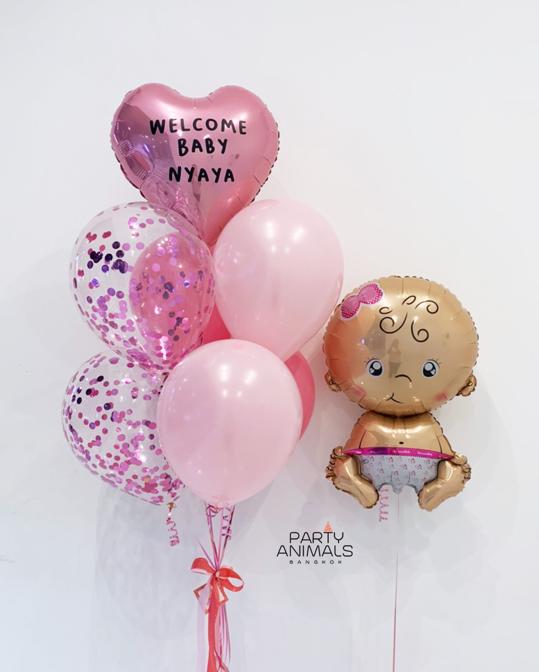 ลูกโป่งเยี่ยมคลอด ลูกโป่งต้อนรับทารก Welcome Baby Balloons (Baby Girl) – Pink Balloon Set (with Helium) (8 pcs)