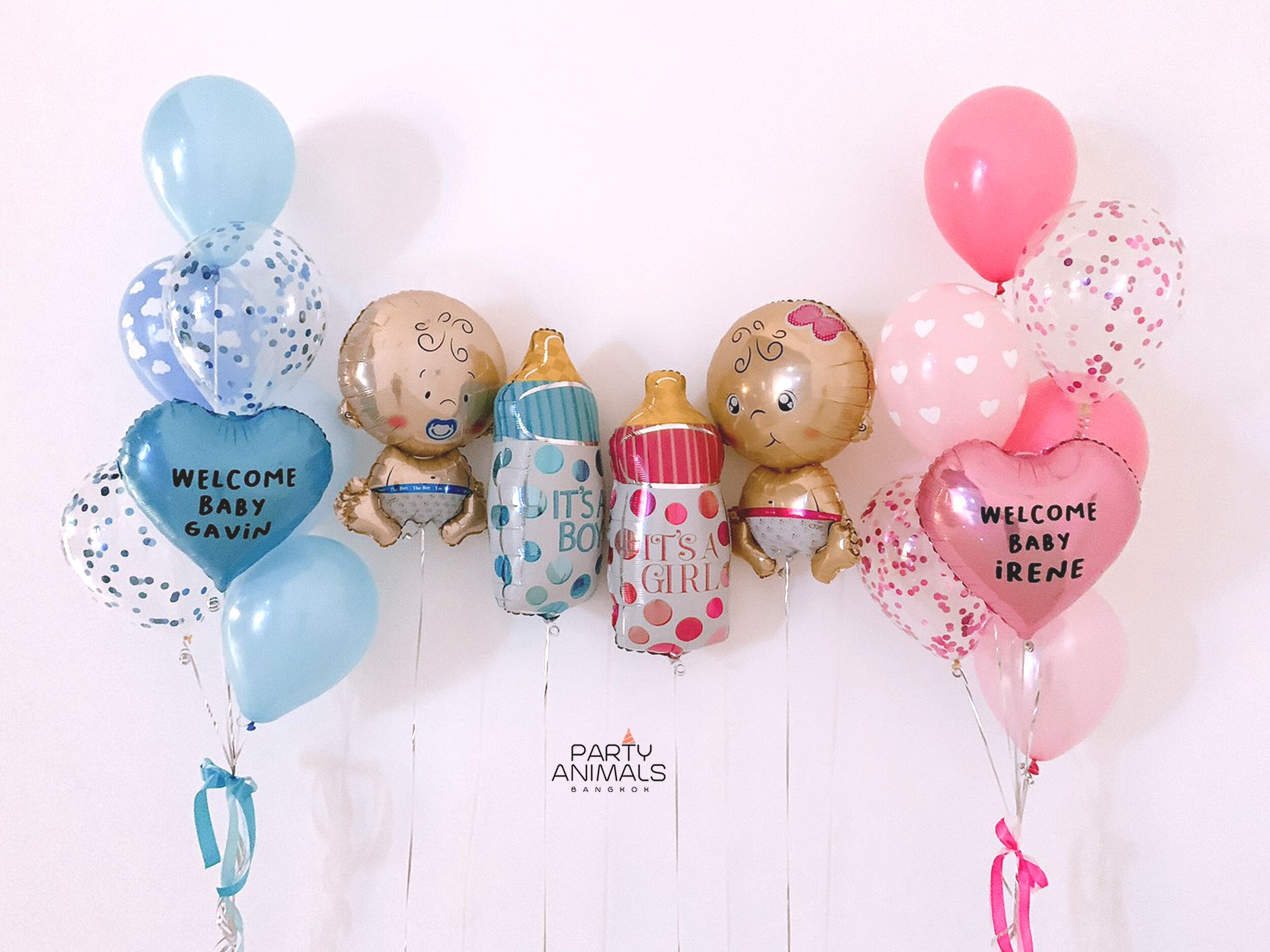ลูกโป่งเยี่ยมคลอด ลูกโป่งต้อนรับทารก Welcome Baby Balloons – Twin Babies Boy & Girl Balloon Set (with Helium) (18 pcs)
