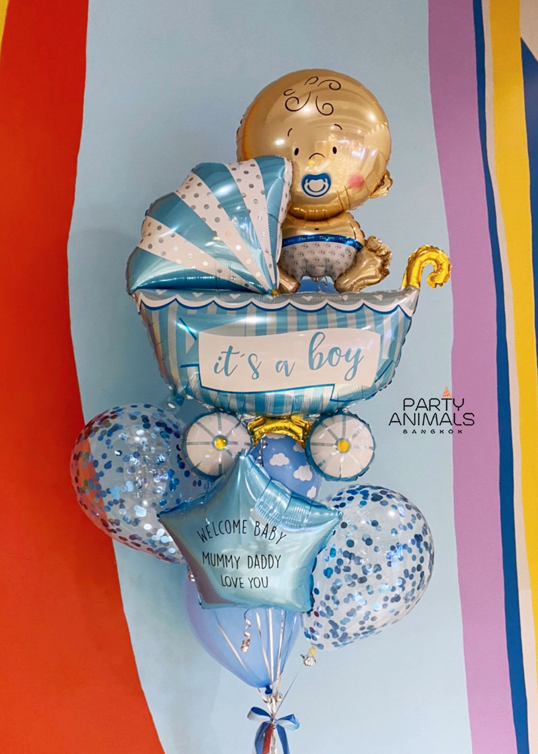 ลูกโป่งเยี่ยมคลอด ลูกโป่งต้อนรับทารก Welcome Baby Balloons (Baby Boy) – STROLLER & CLOUD Balloon Bouquet (with helium) (8 pcs)