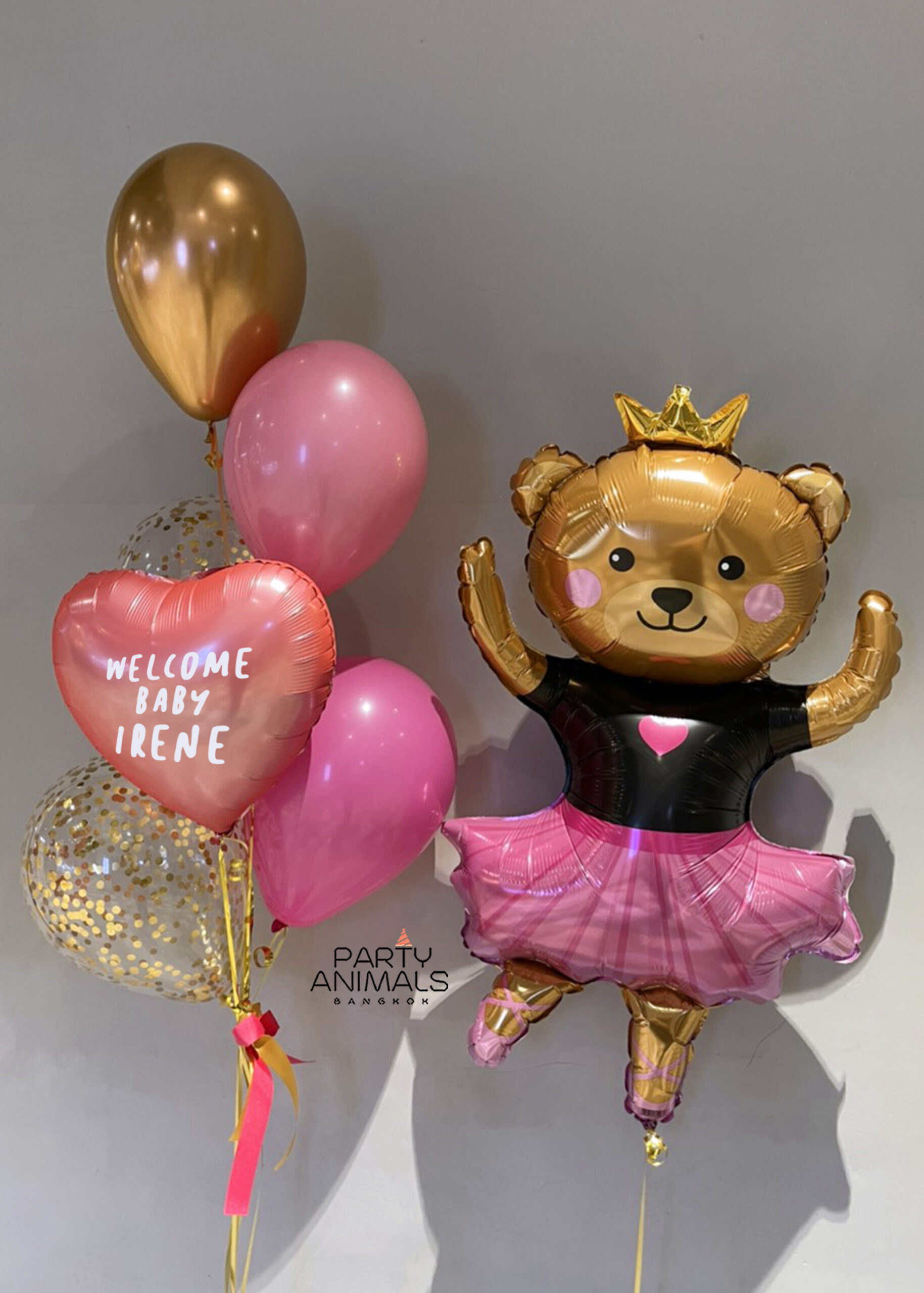ลูกโป่งเยี่ยมคลอด ลูกโป่งต้อนรับทารก Welcome Baby Balloons (Baby Girl) – Dancing Ballerina Bear Balloon Set (with Helium) (7 pcs)