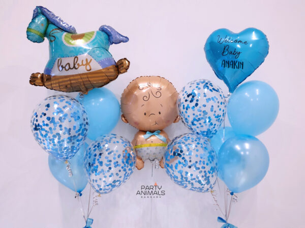 ลูกโป่งเยี่ยมคลอด ลูกโป่งต้อนรับทารก Welcome Baby Balloons (Baby Boy) – Blue Balloon Set (with Helium) (12 pcs)
