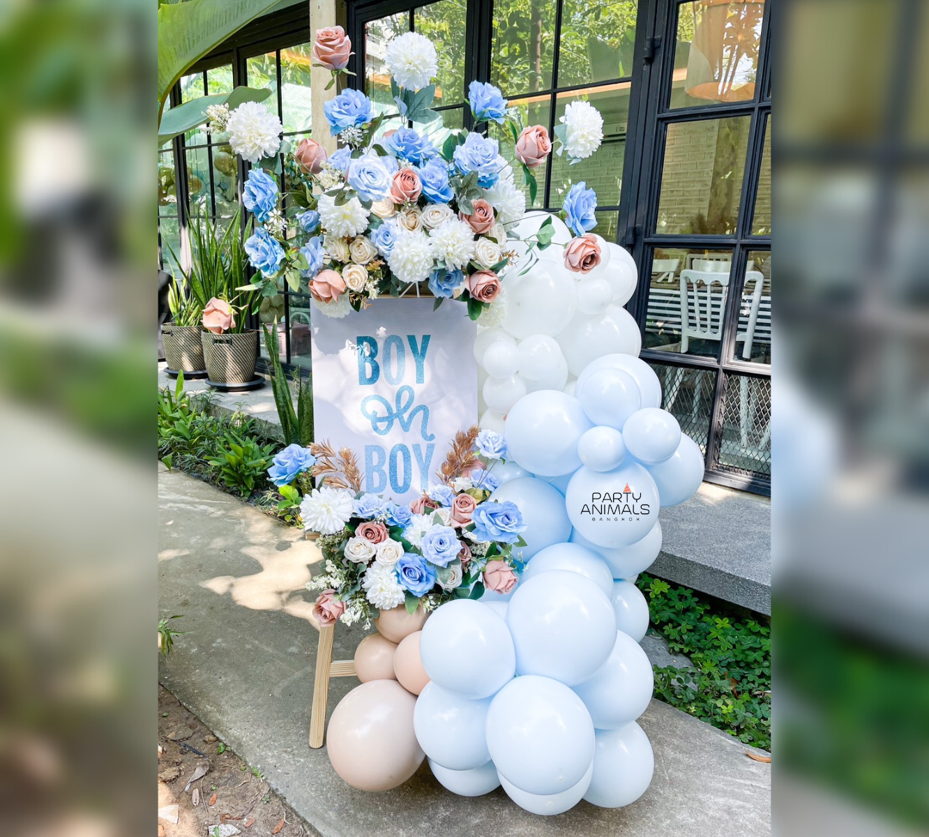 ลูกโป่งเบบี้ชาวเวอร์ Baby Shower – ฉากลูกโป่งเฉลยเพศ Balloon Backdrop – Boy Oh Boy! Baby Shower Gender Reveal Party – For K. Da Endorphine & Dannis