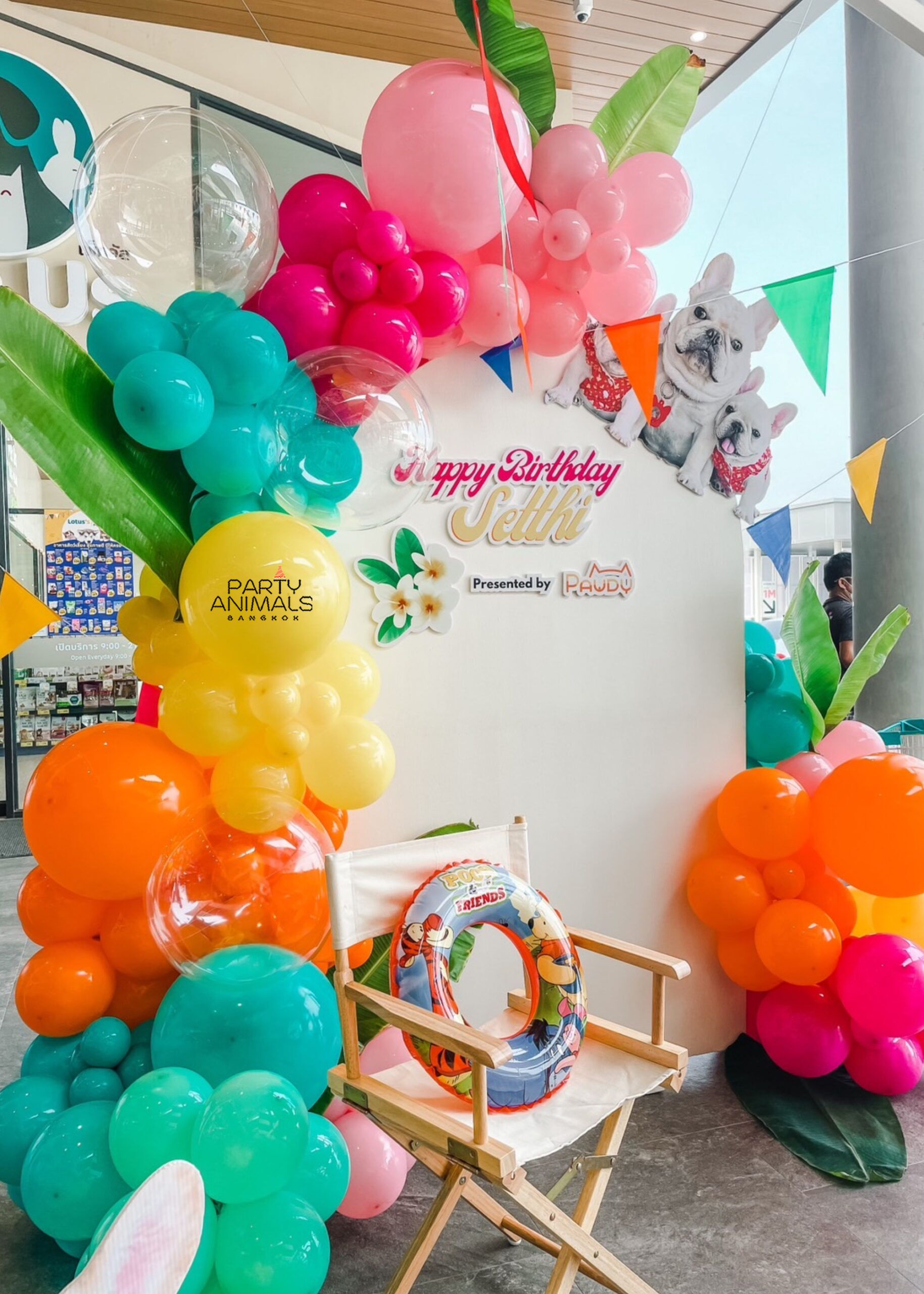 แบคดรอปลูกโป่ง ฉากลูกโป่ง Birthday Balloon Backdrop – Songkran Birthday Party for P’Setthi