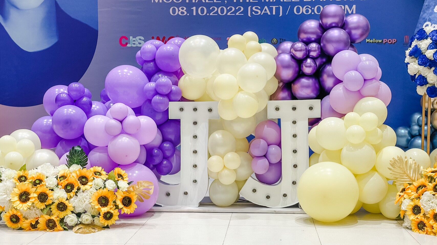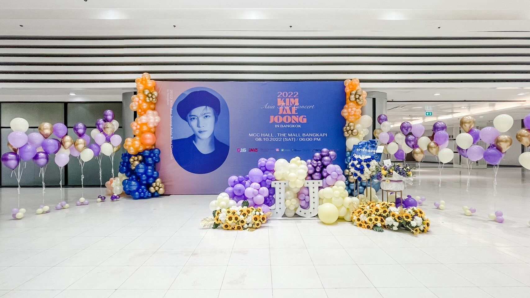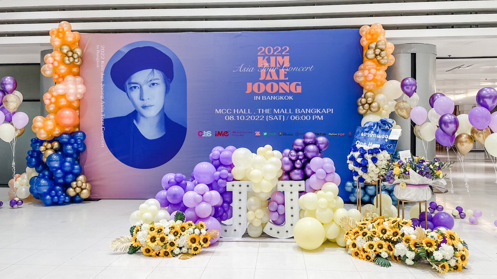 แบคดรอปลูกโป่ง ฉากลูกโป่ง Fan Meeting Balloon Backdrop – Kim Jae Joong in Bangkok – Purple & Orange