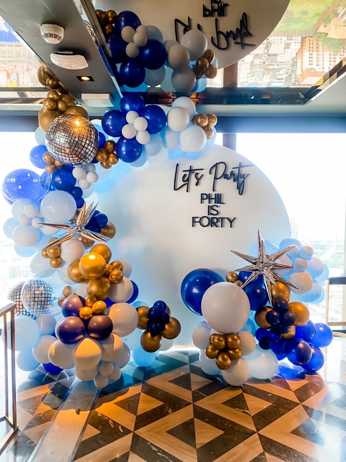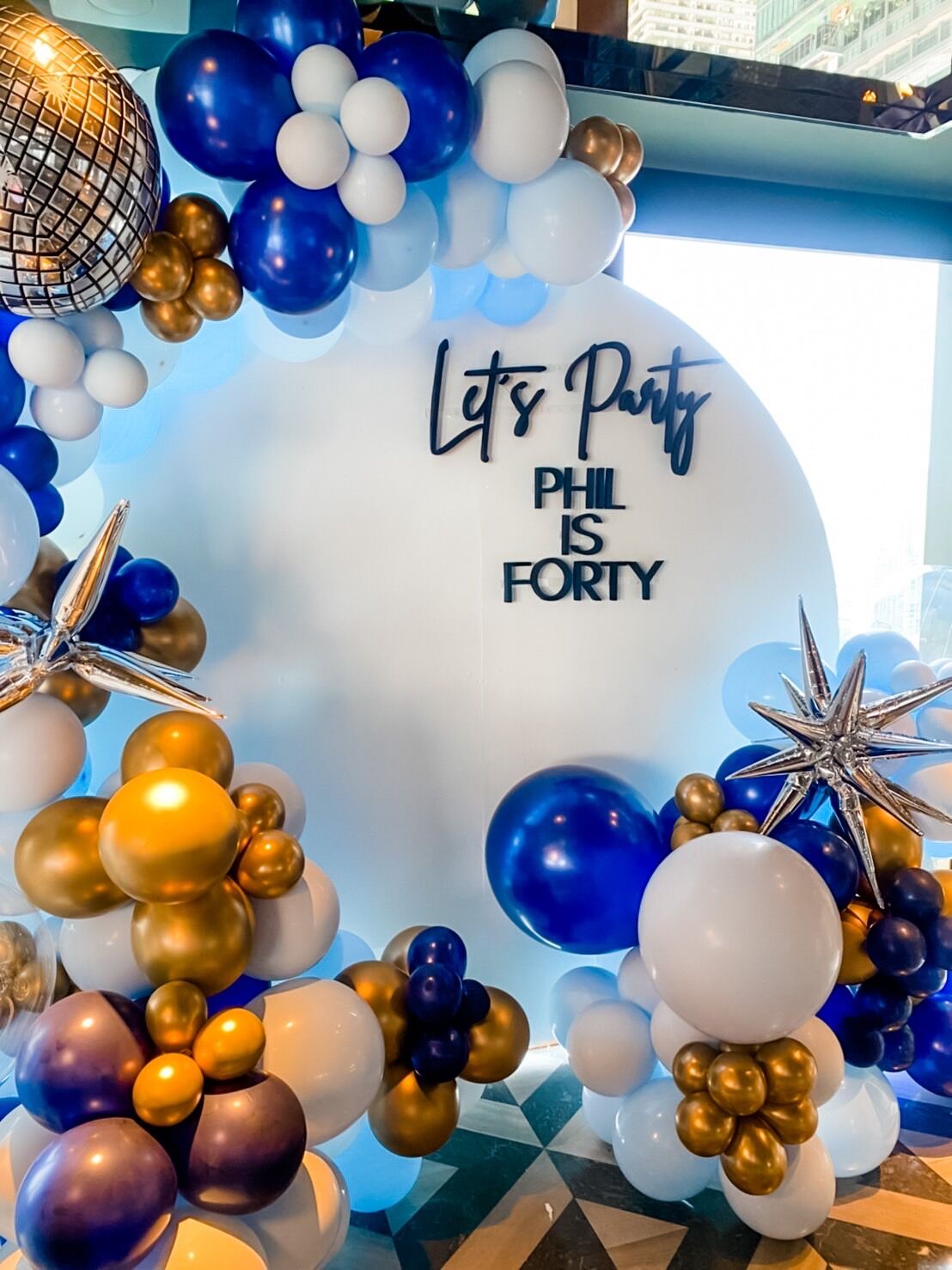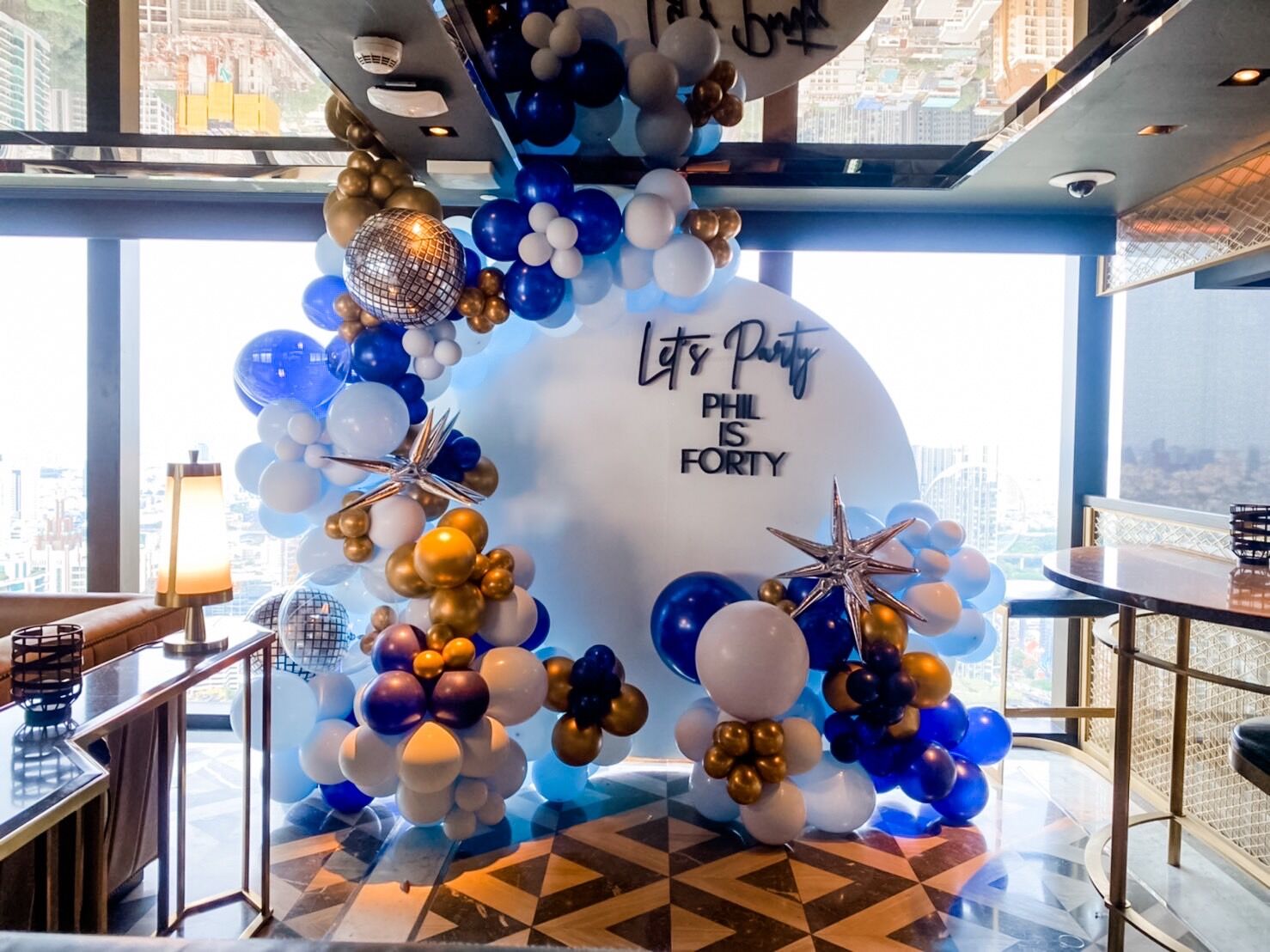 แบคดรอปลูกโป่ง ฉากลูกโป่ง Birthday Balloon Backdrop – Let’s Party Phil is 40 – Navy