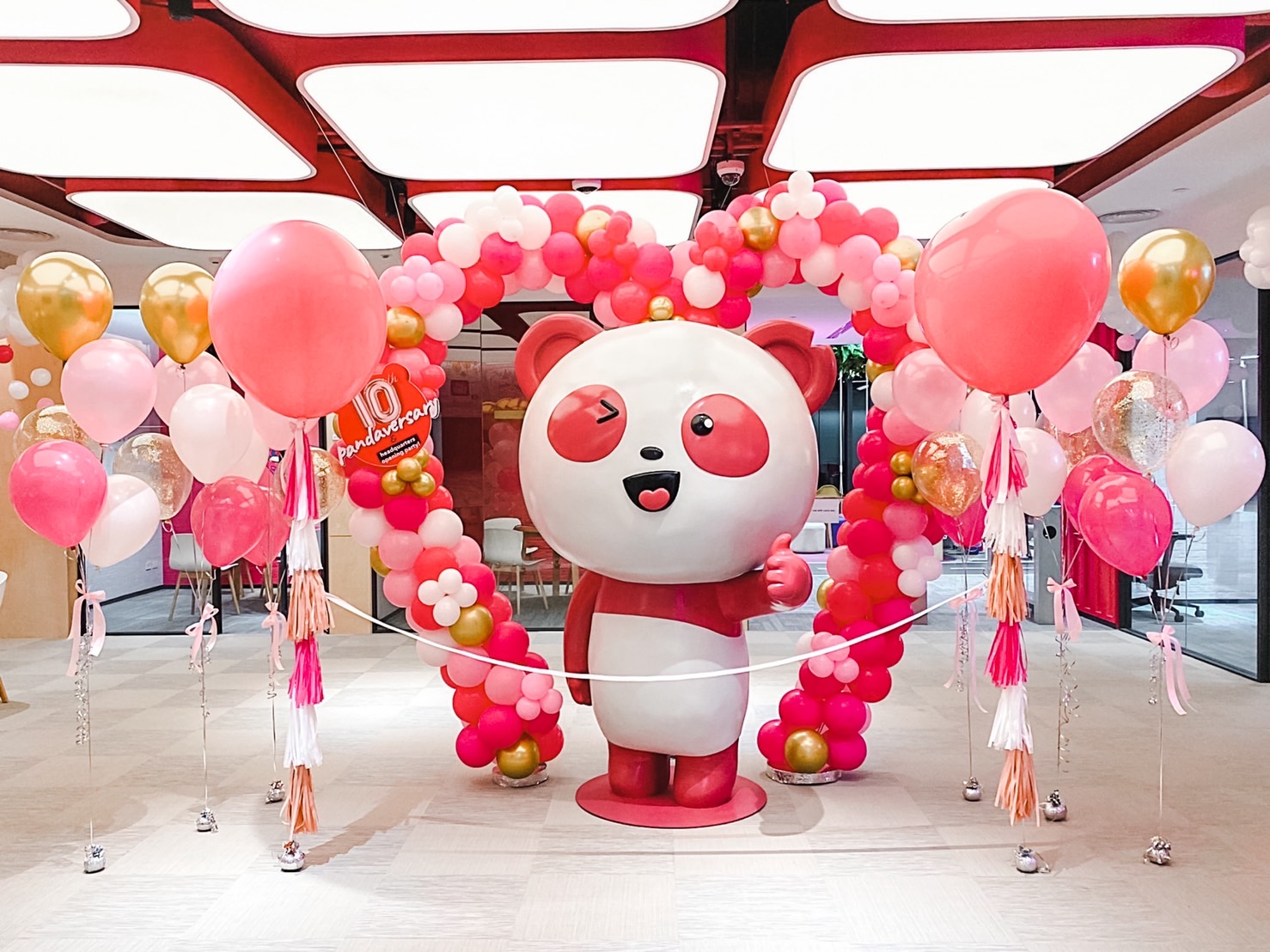 แบคดรอปลูกโป่ง ฉากลูกโป่ง Corporate Events Balloon Backdrop – Food Panda’s 10th Anniversary (Whole Office Decoration)