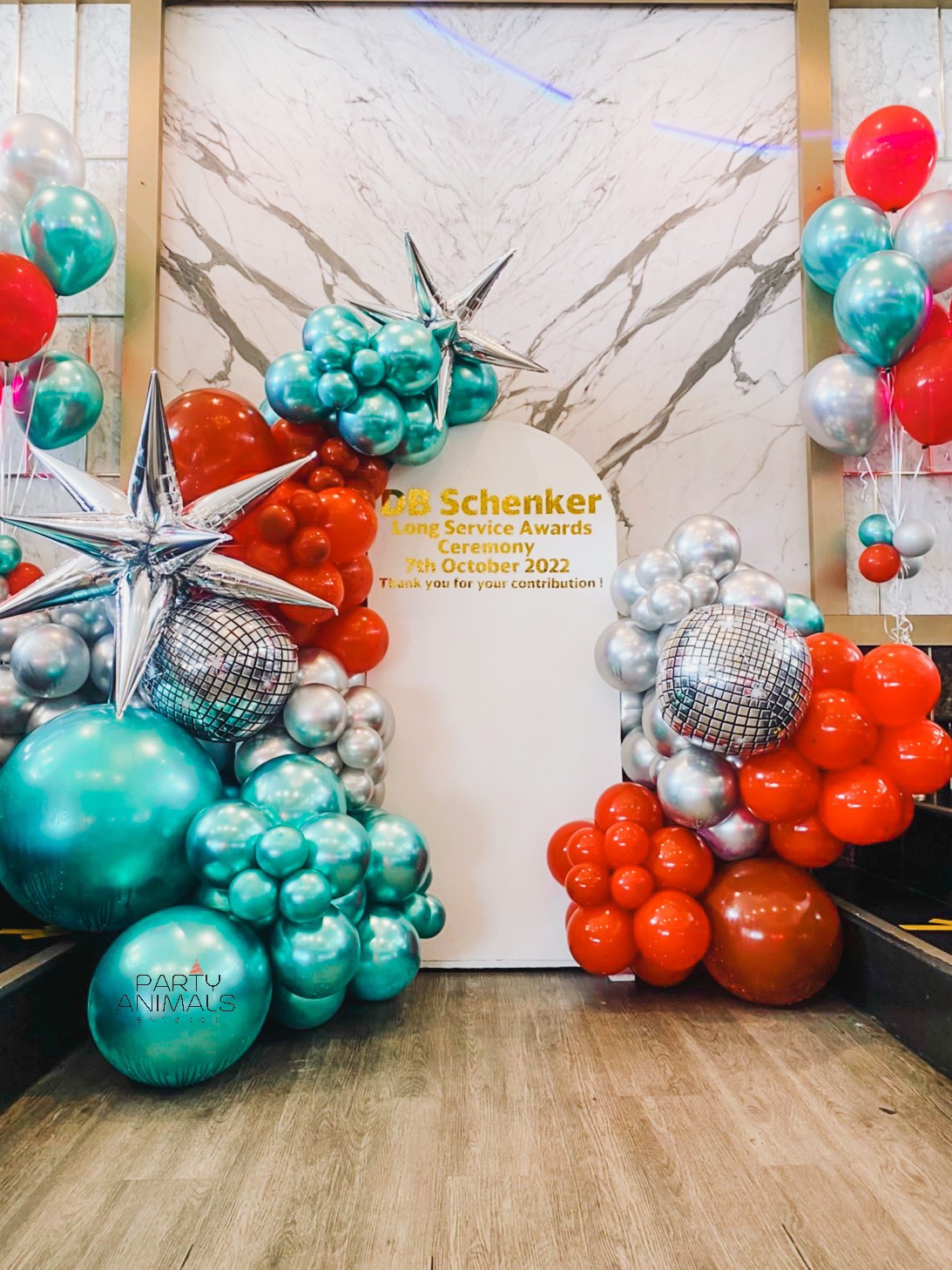แบคดรอปลูกโป่ง ฉากลูกโป่ง Corporate Events Balloon Backdrop – DB Schenker Long Service Awards Ceremony